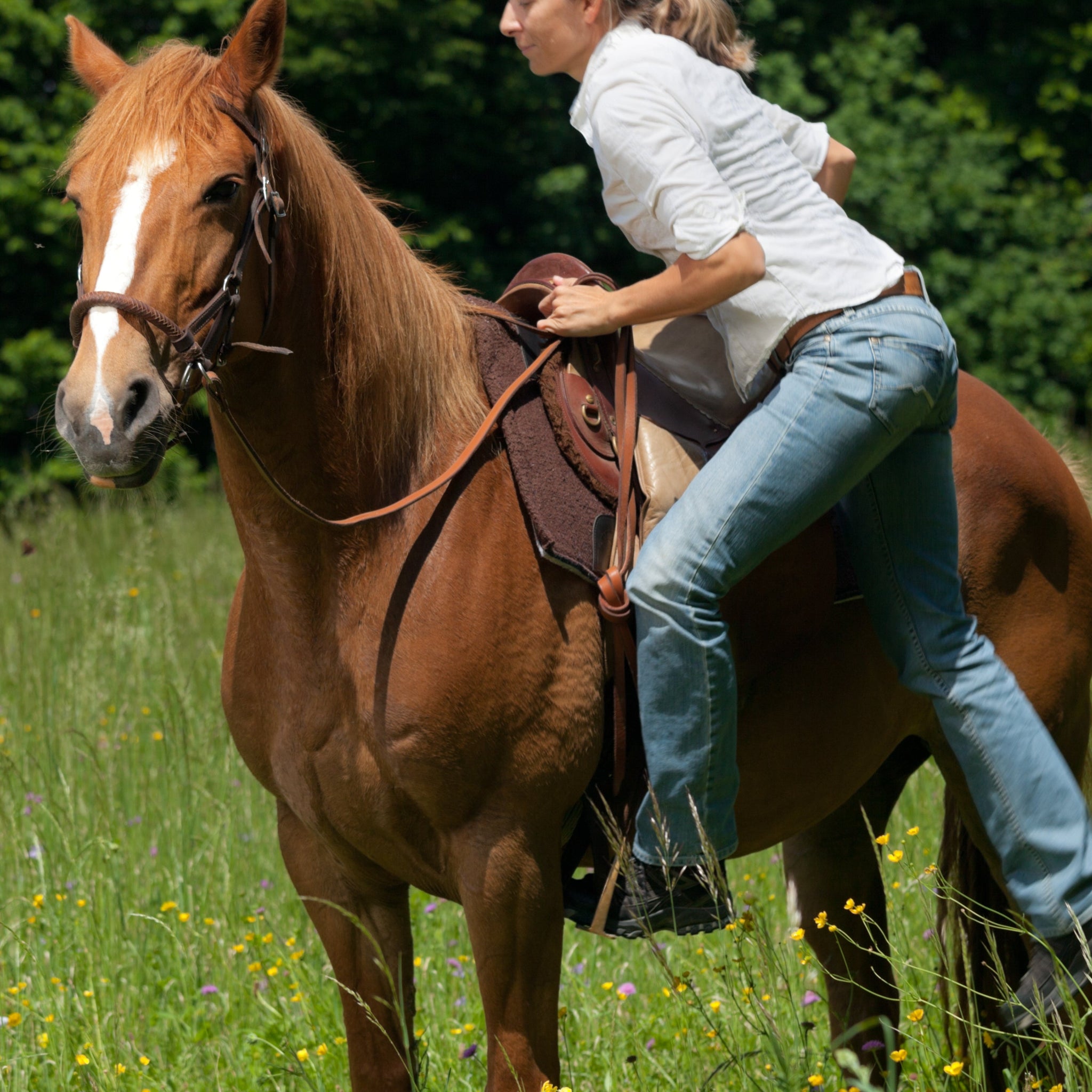 If you are only climbing your horse, say from the left, the equine will have problems with their back muscle. Because the animal is repeatedly working the left muscles of their spine to support your weight, those muscles will become larger, stronger, and tighter, and this can affect how well they perform and how well the saddle fits on their back.
