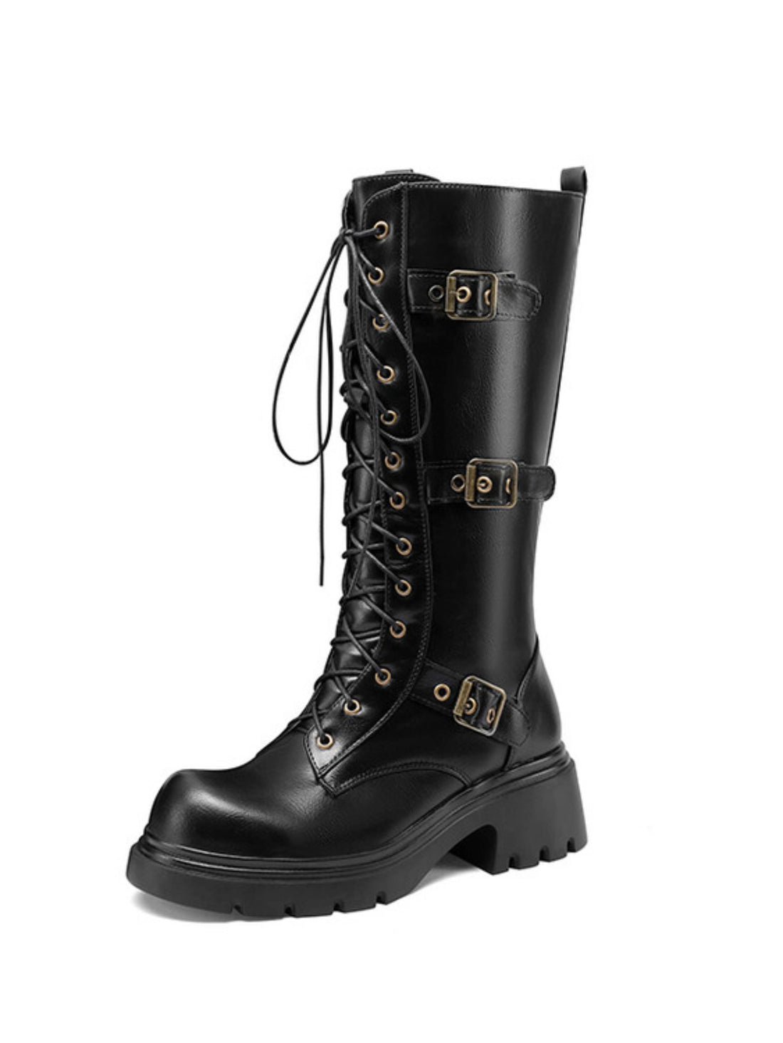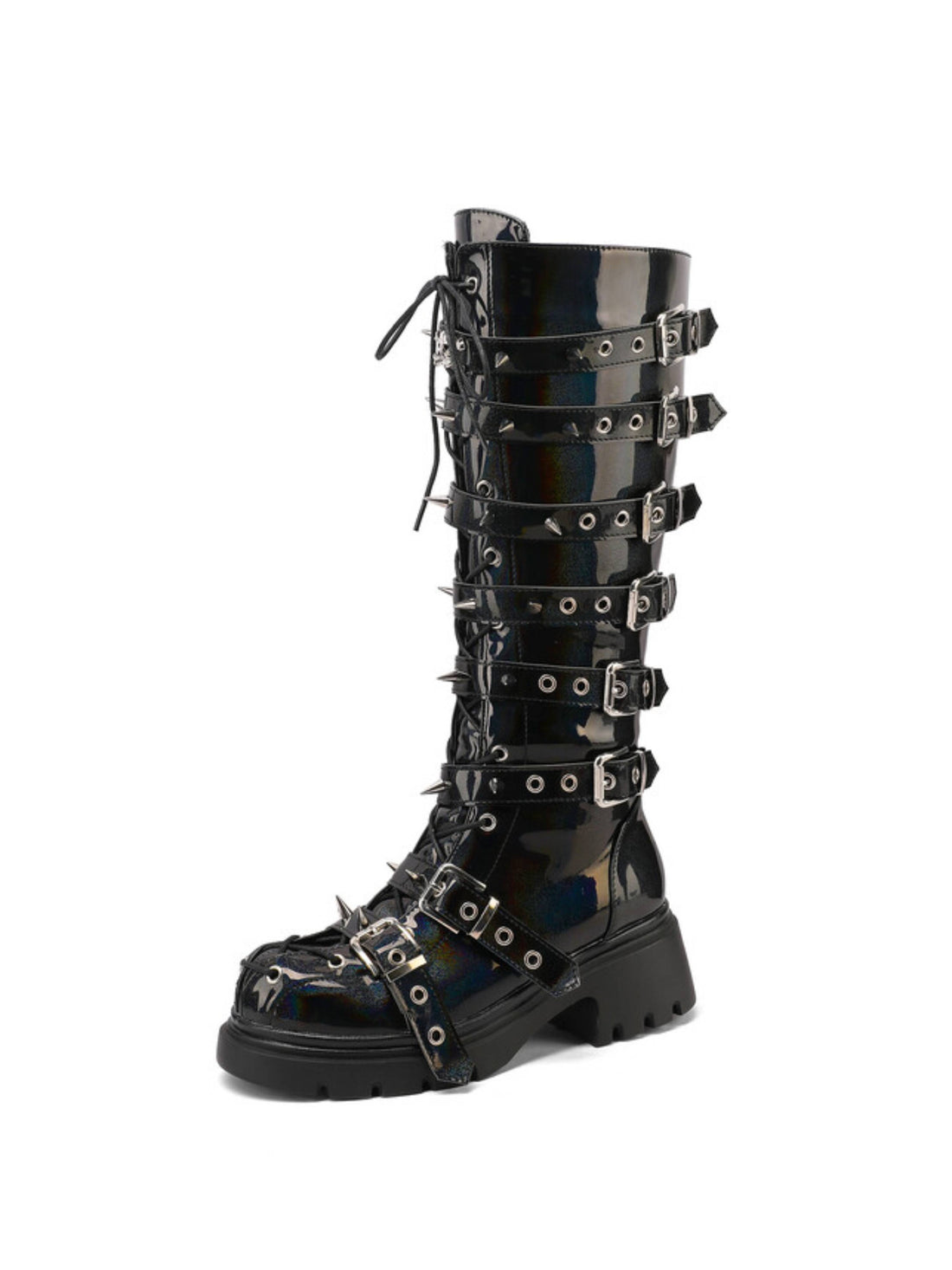 Women's Buckled Lace-Up Rivets Black Tall Gothic Boots