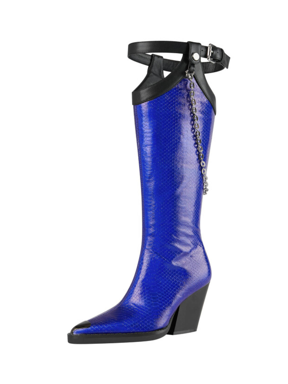Eye-Catching Buckled Belt Chain Long Royal Blue Cowgirl Boots