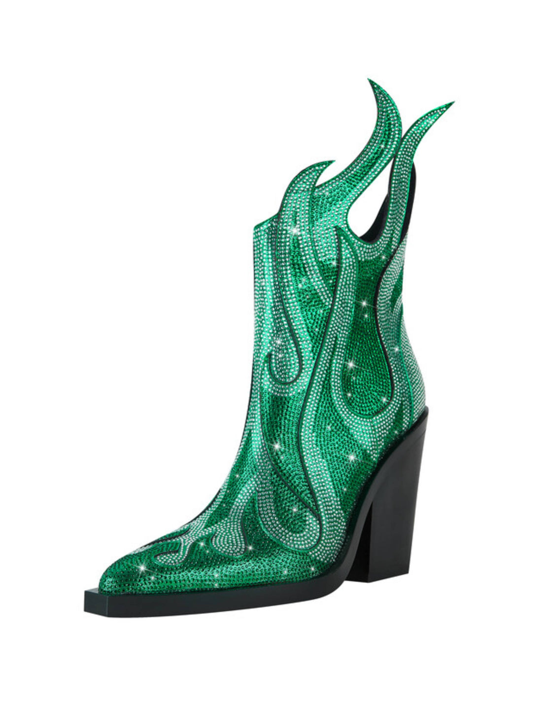 Green Rhinestone Flame Shape Western Heel Pointed Toe Cowgirl Boots