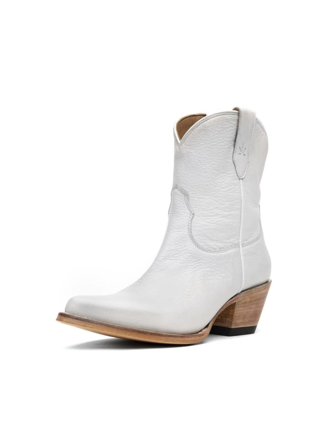 White Mid Calf Low Heel Snip Toe Cowgirl Boots for Women