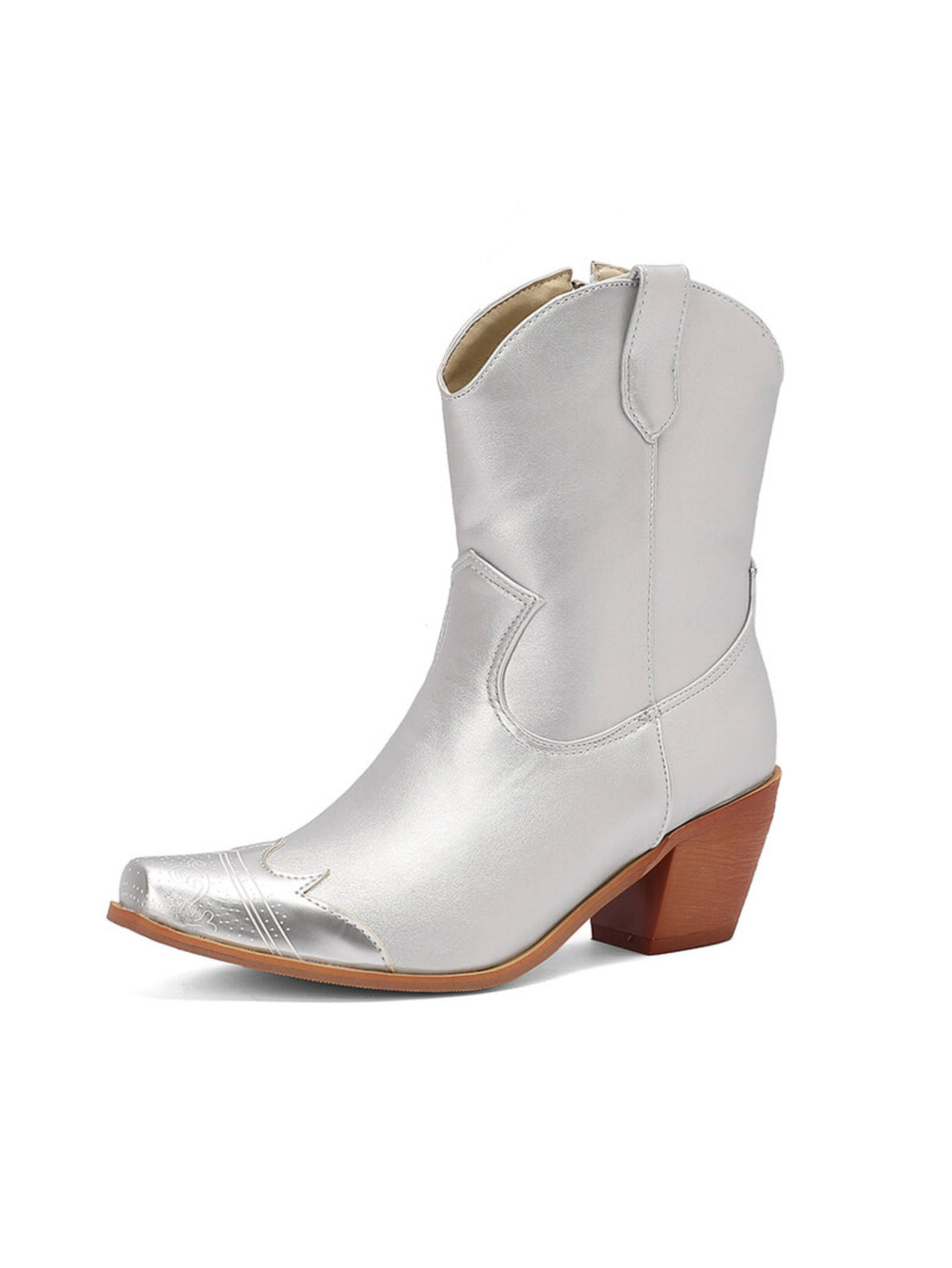 Shining Snip Toe Silver Ankle Cowgirl Boots for Women