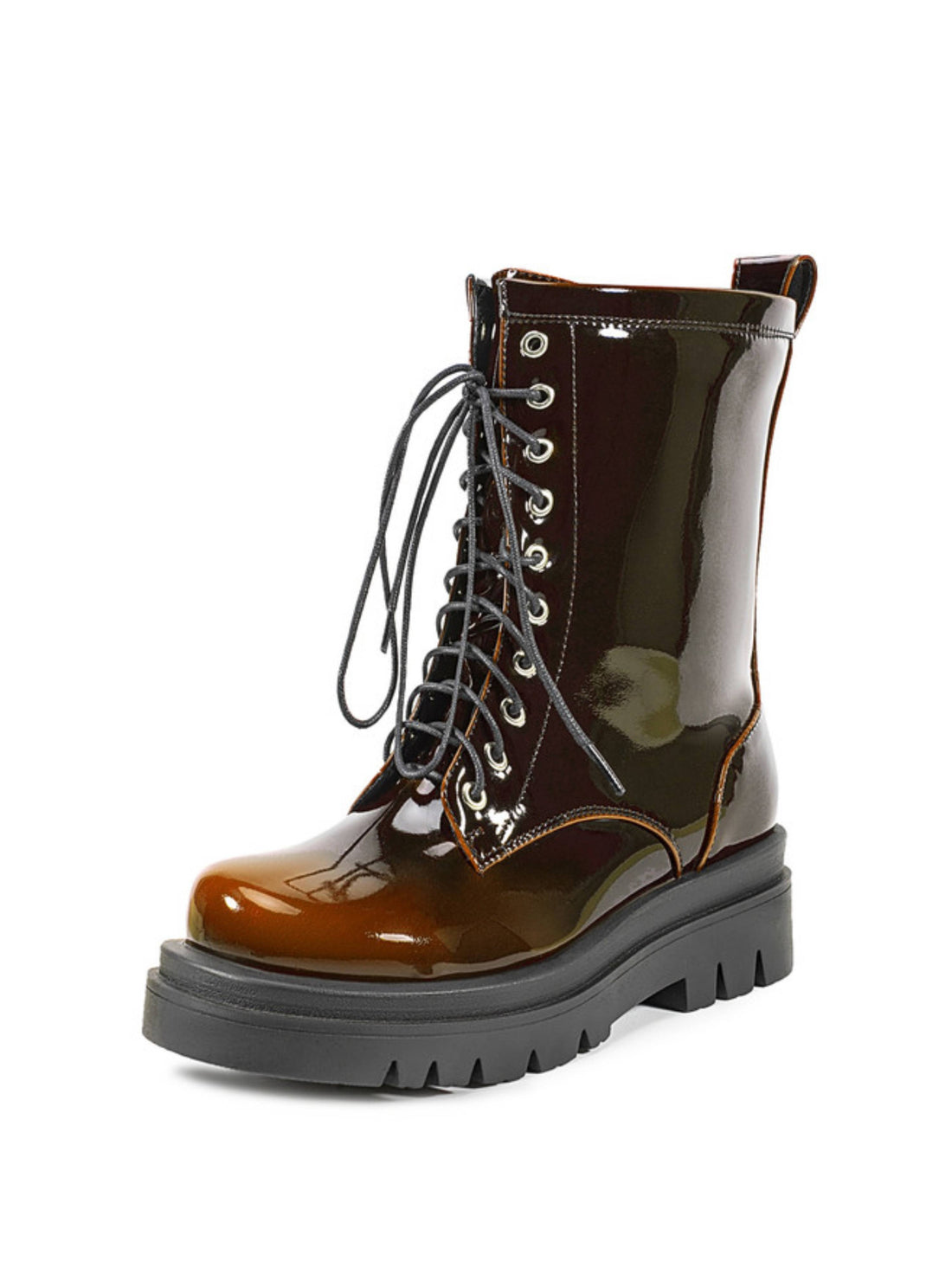 Chic ombre green chunky heels platform lace-up boots bring bold fashion, comfort, and edgy streetwear...
