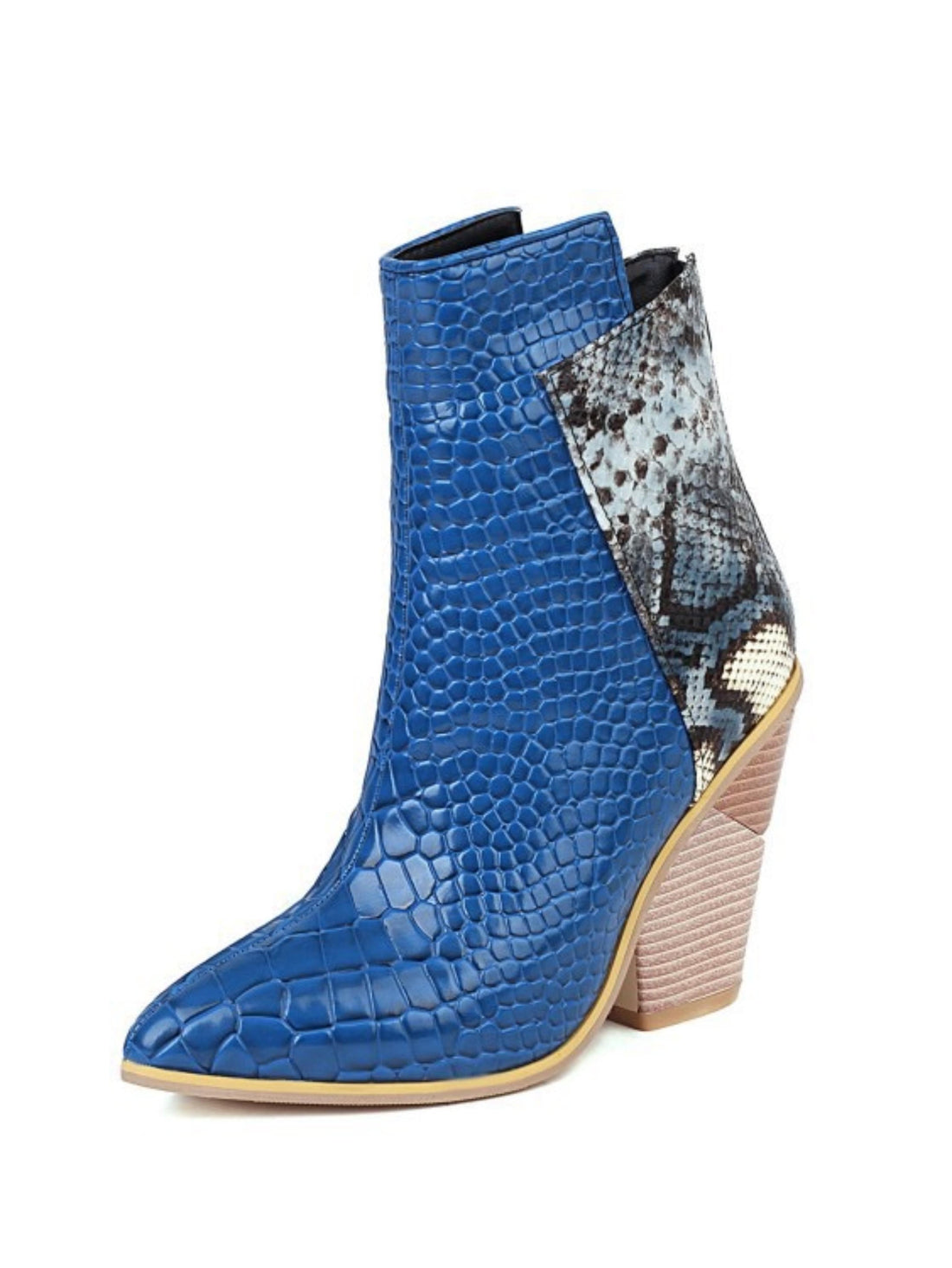 Blue Lizard & Snakeskin Pattern Block High Heel Western Ankle Boots