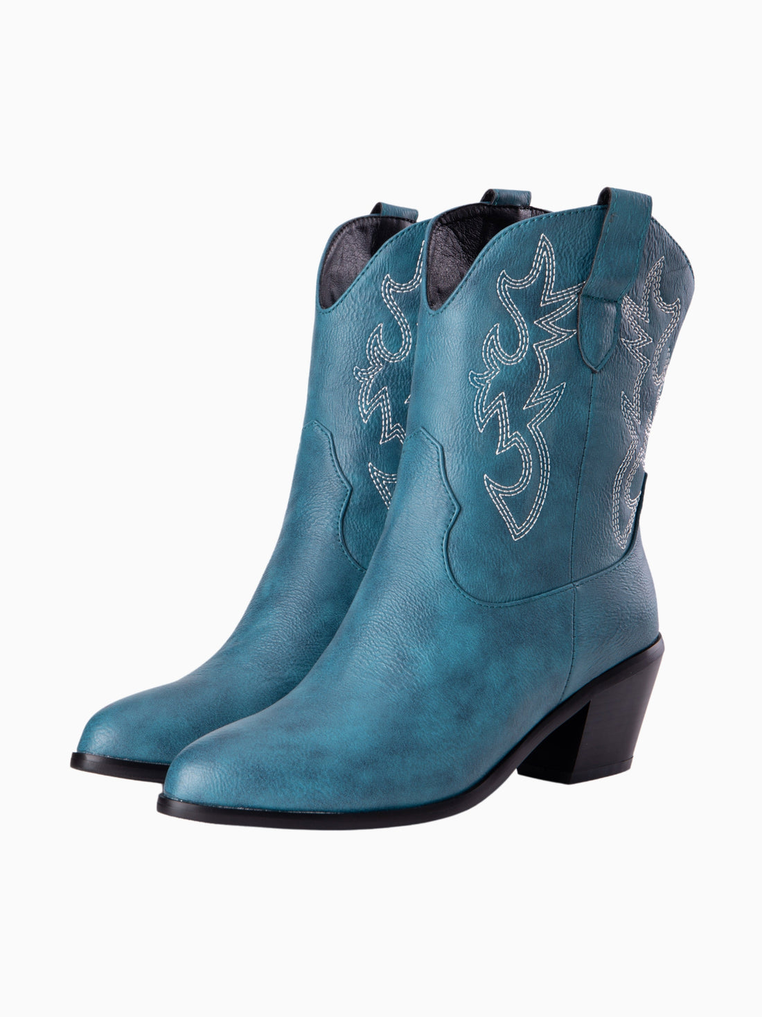 Light Blue Ankle Round Toe Low Heel Cowgirl Boots