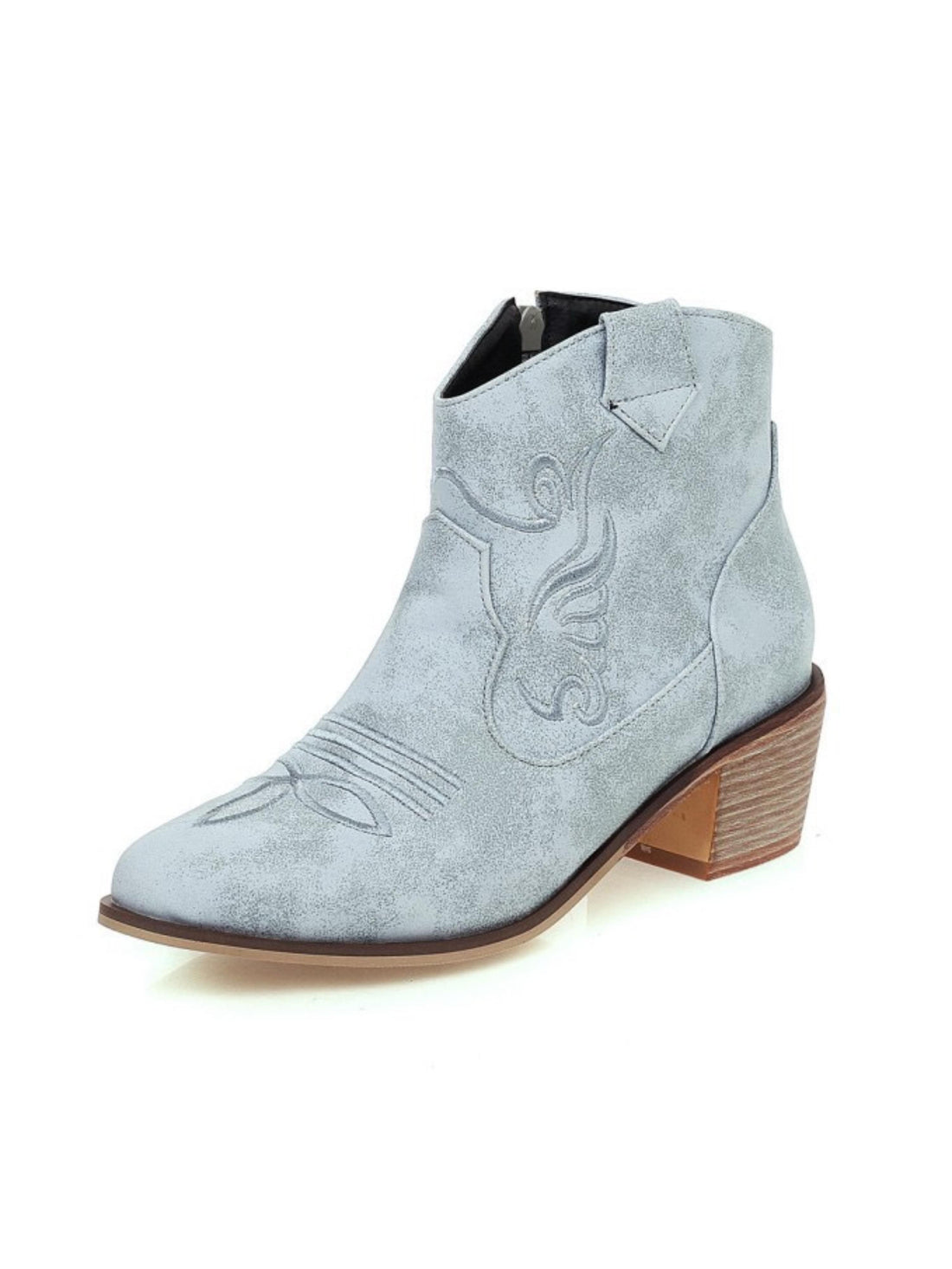 Muted Greyish Light Blue Embroidered Cowgirl Ankle Boots for Women