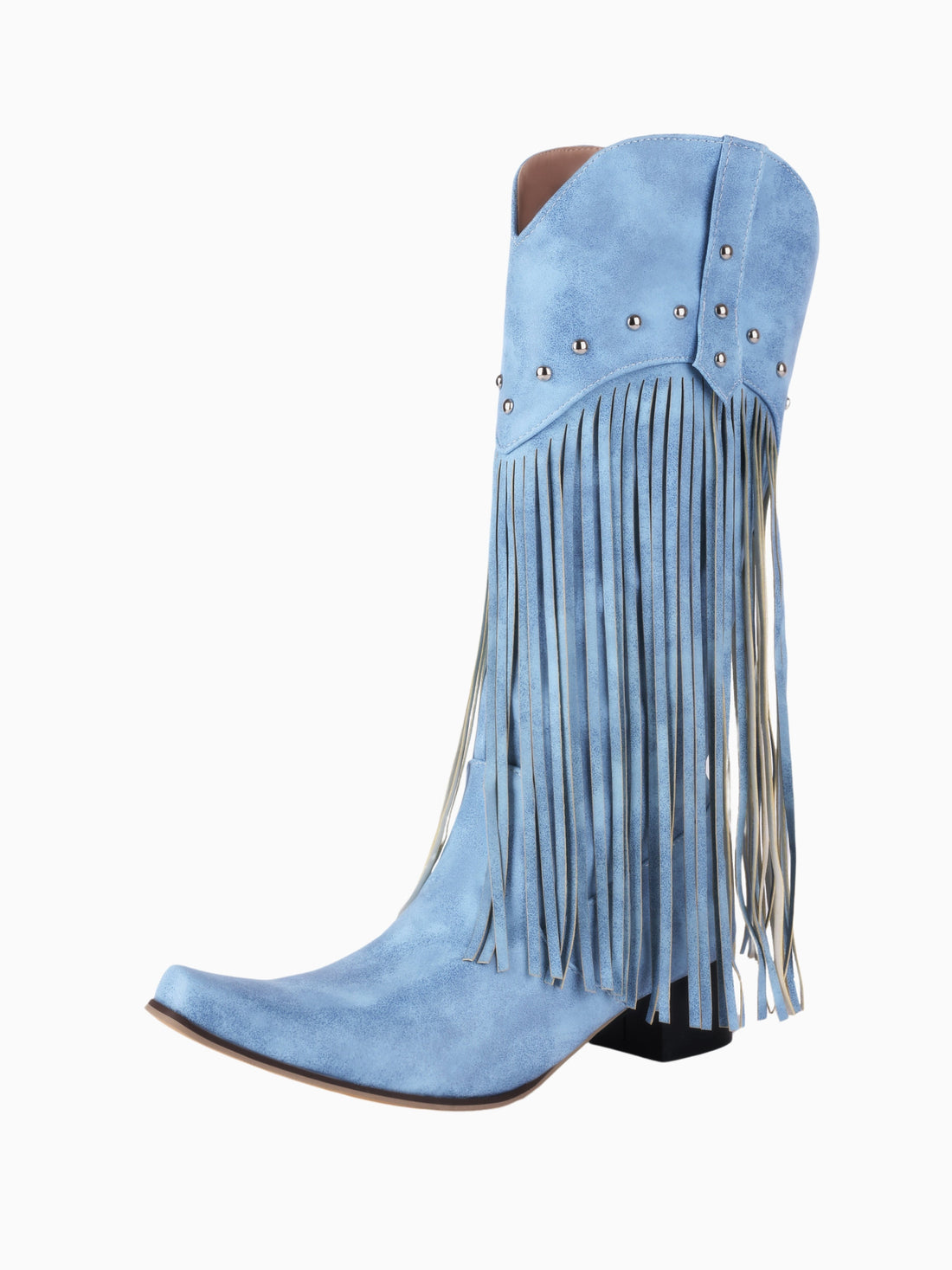 Western Sky Blue Studded Flow Fringe Cowgirl Boots