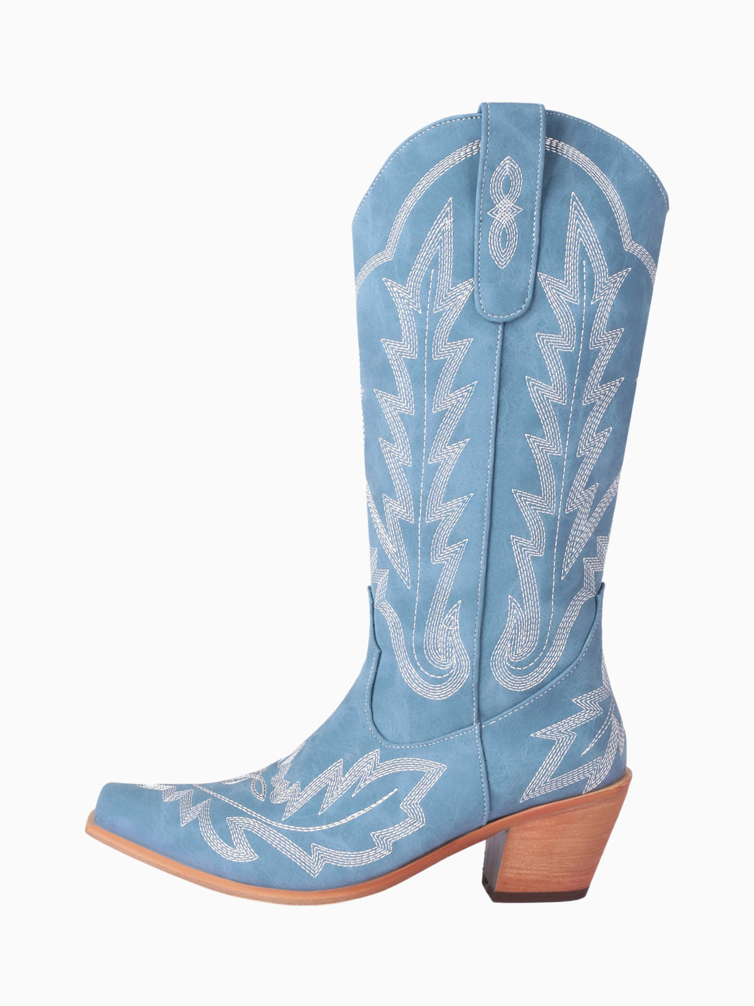 Classic Embroidered Light Blue Cowgirl Boots Mid Calf