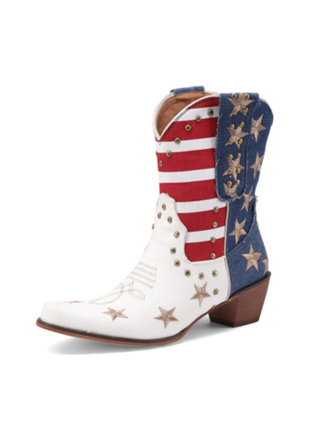 Star Inlay Flag Bule & White Studded Snip Toe Western Boots