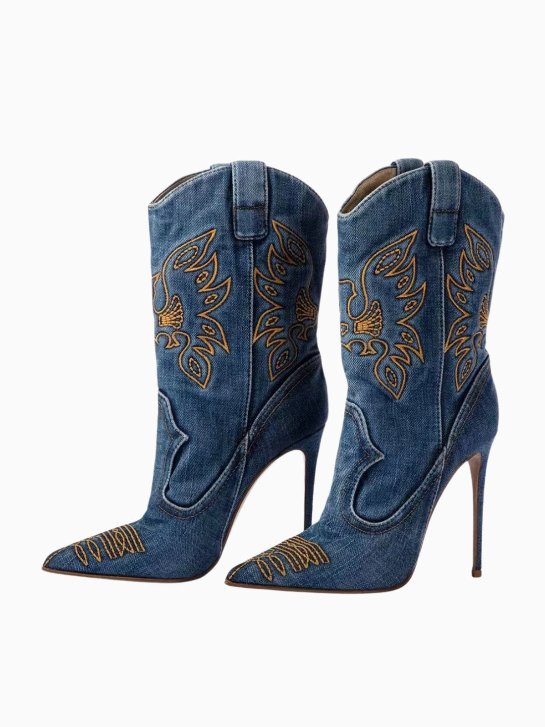 A modern take on classic cowgirl boots, crafted in premium navy denim with an elegant...