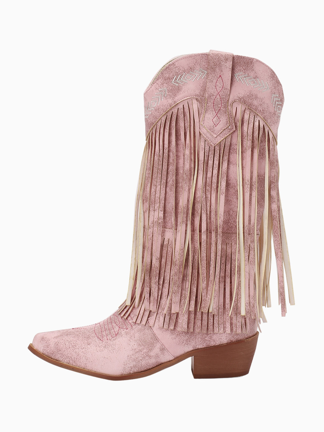 These Bohemian Fringe Pink Cowgirl Boots feature eye-catching cascading fringe detail and delicate embroidered patterns....