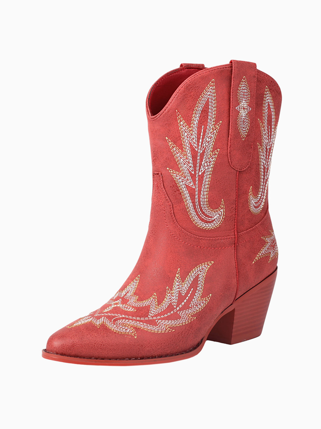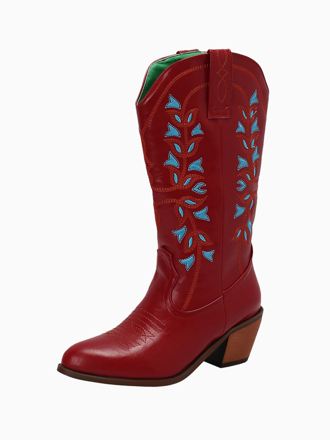 Vibrant Red Embroidered Mid-Calf Cowgirl Boots