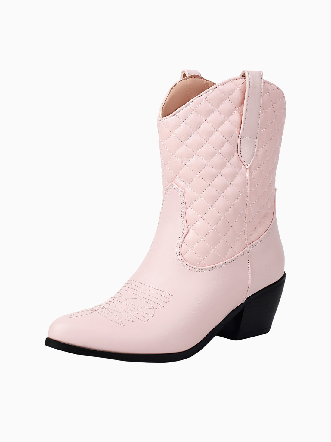 Quilted Classic Light Pink Cowgirl Ankle Boots for Women