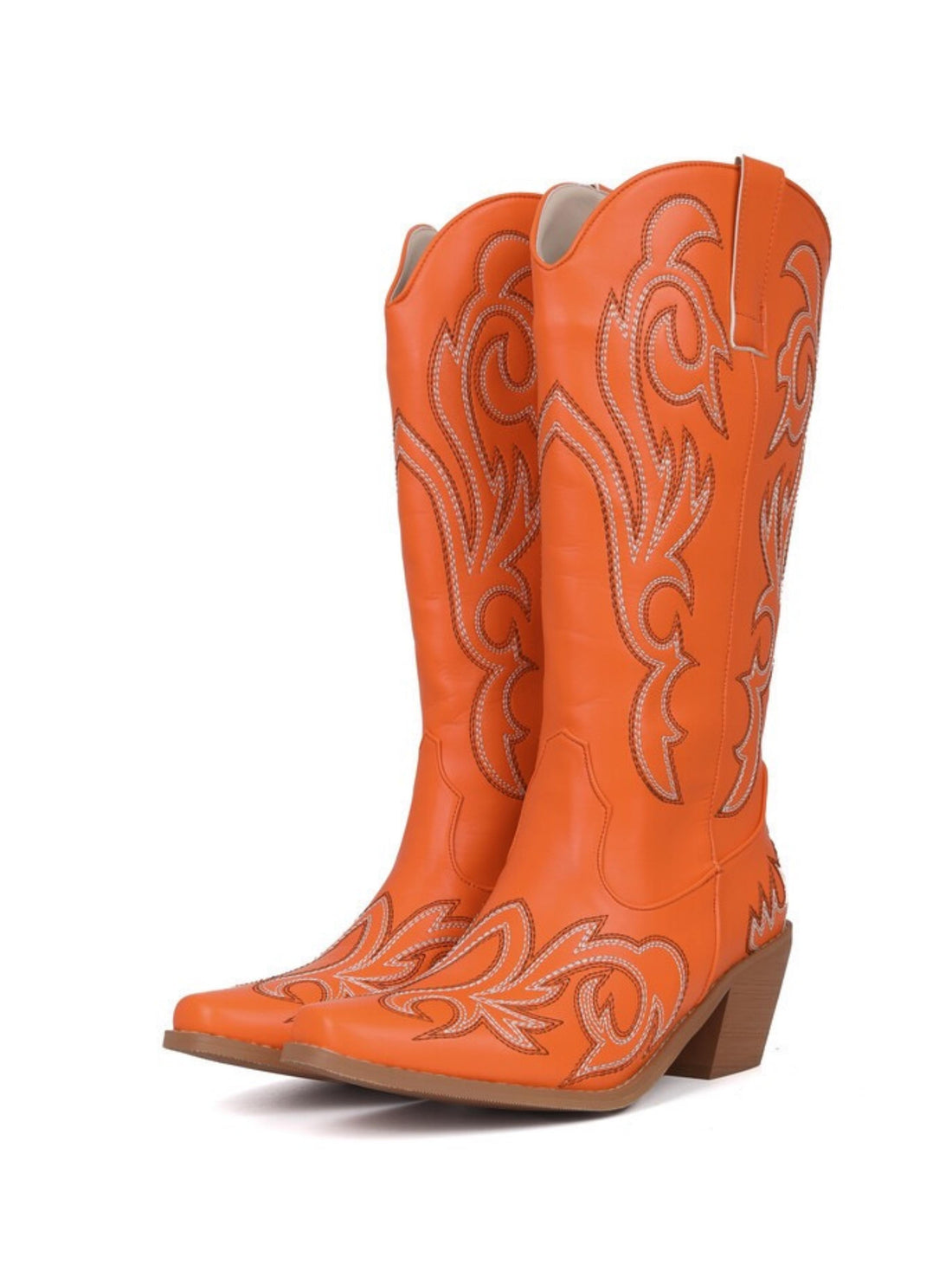Make a bold statement with our Orange Cowgirl Boots collection, where sunset-inspired hues meet western flair. These vibrant boots combine classic cowgirl style with energetic orange tones. Perfect for free spirits who love to stand out.