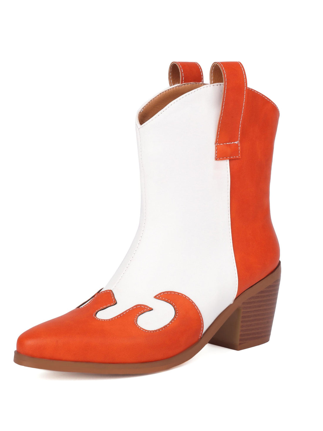 Vibrant Orange & White Pointed Toe Cowboy Boots for Women