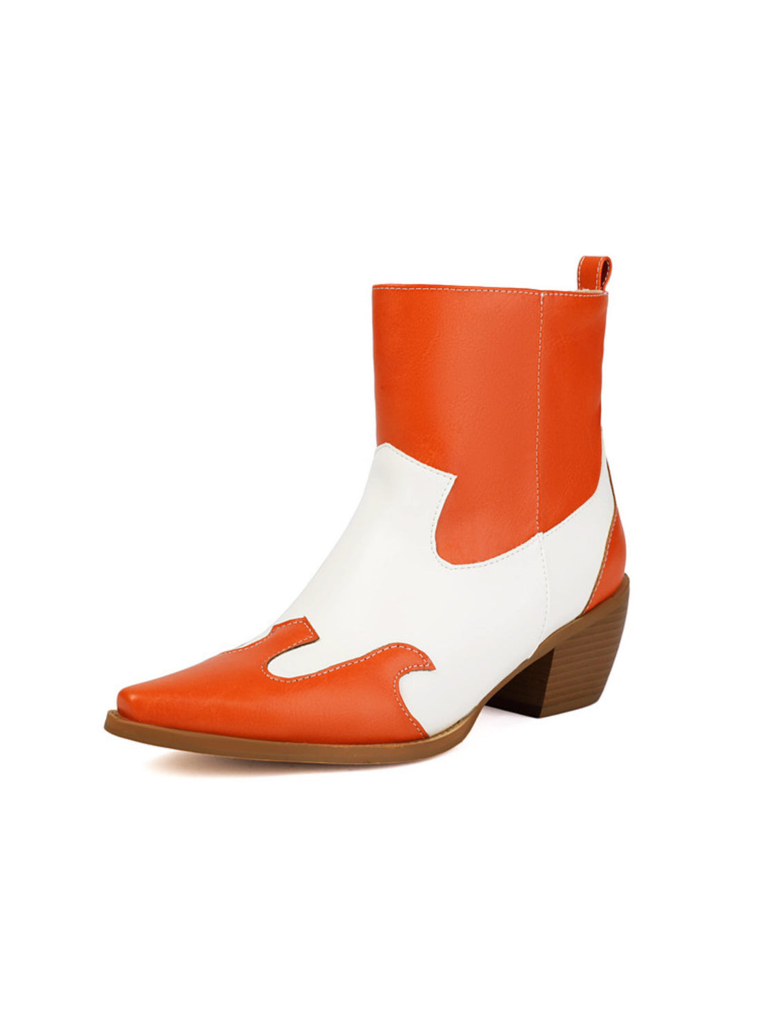 White and Orange Patchwork Snip Toe Cowgirl Booties