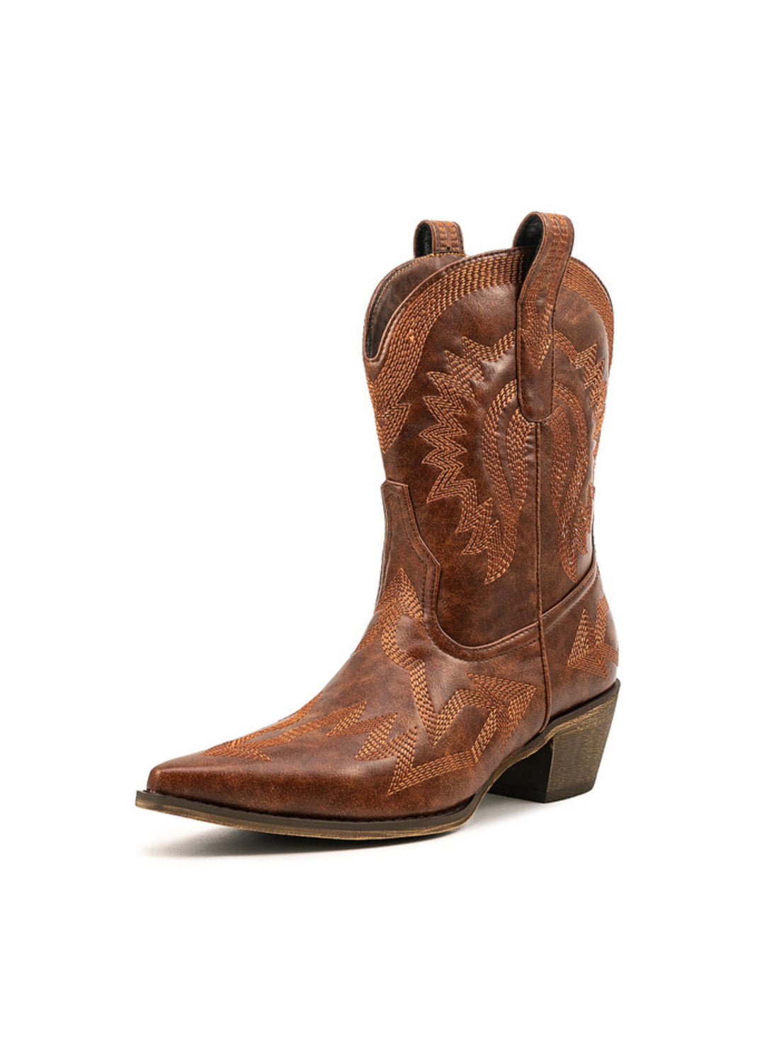 Classic Embroidered Snip Toe Western Heel Brown Cowgirl Boots
