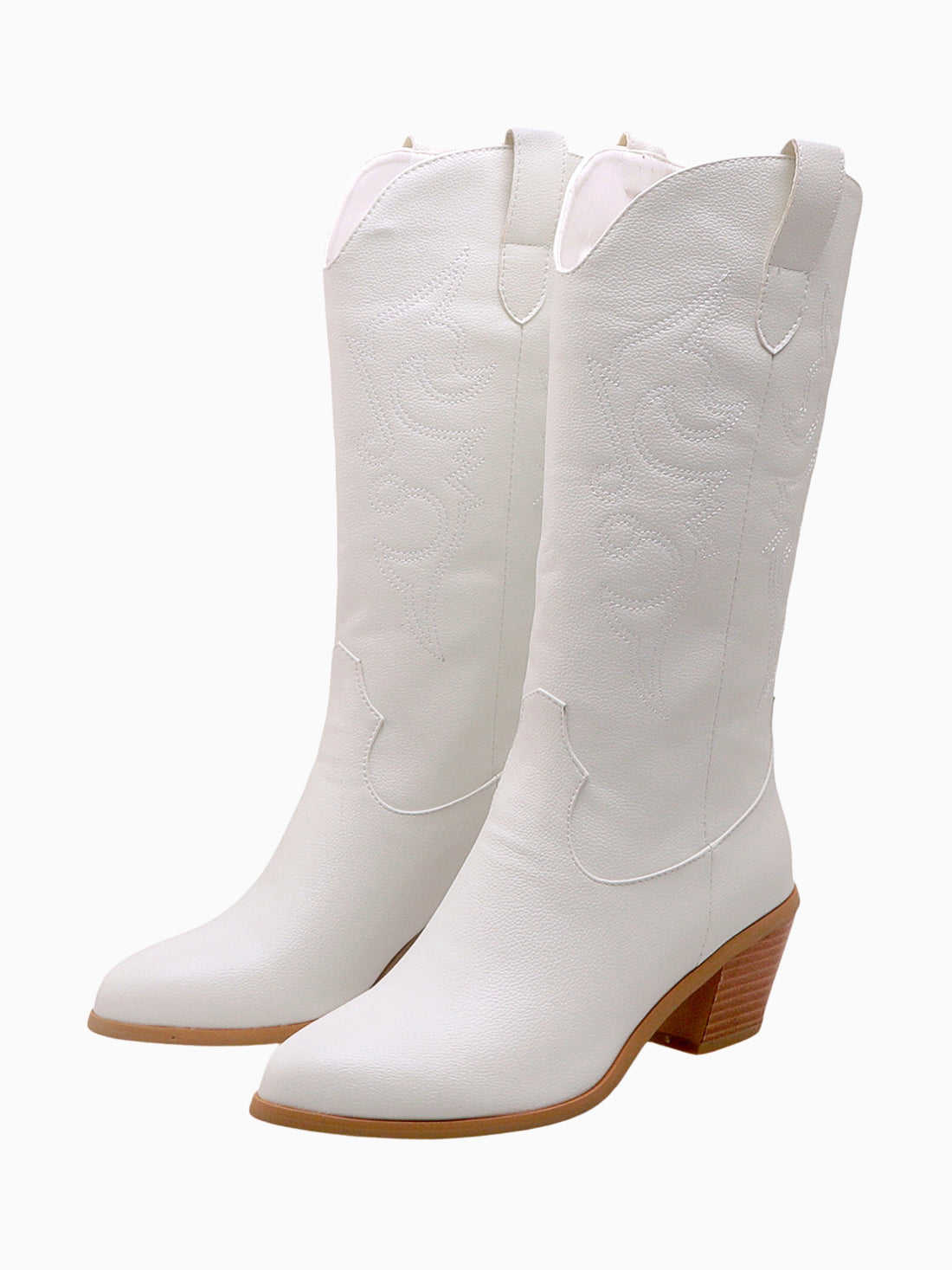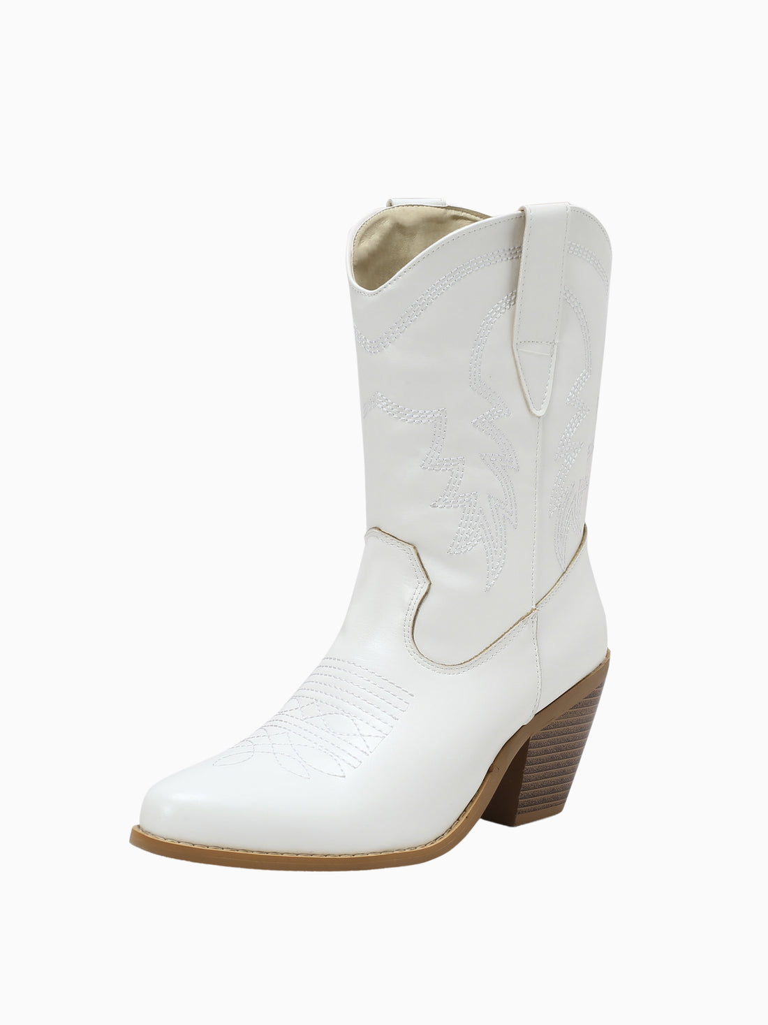 Snip Toe Mid Calf White Cowgirl Boots for Women