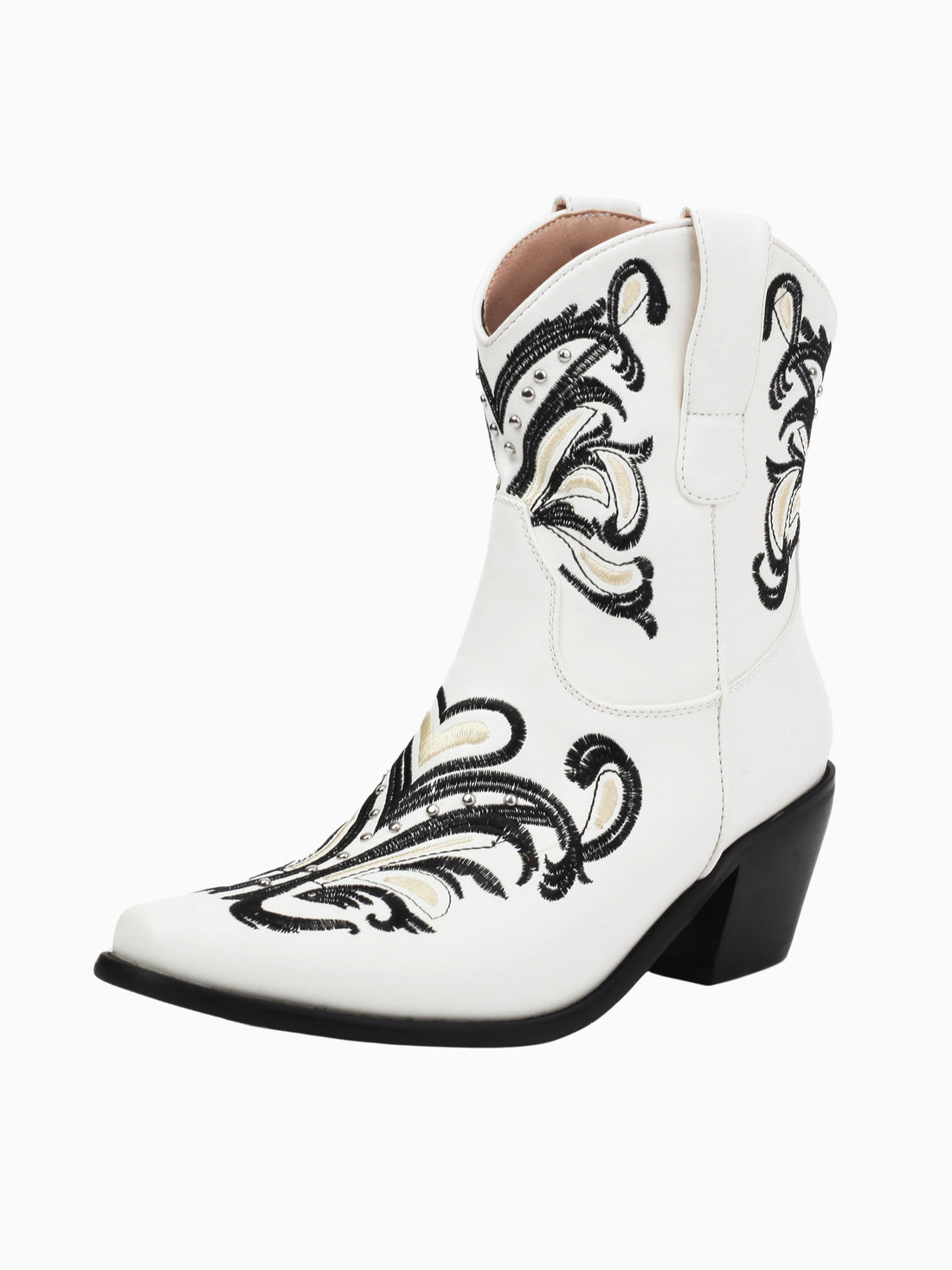 Luxe Baroque Embroidered White Ankle Cowgirl Boots