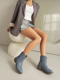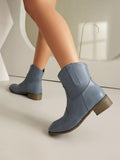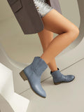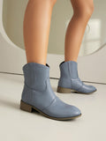 Light Blue Ankle Round Toe Low Heel Cowgirl Boots