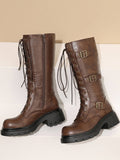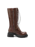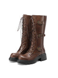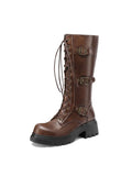Buckled Lace-Up Dark Brown Platform Combat Boots Women