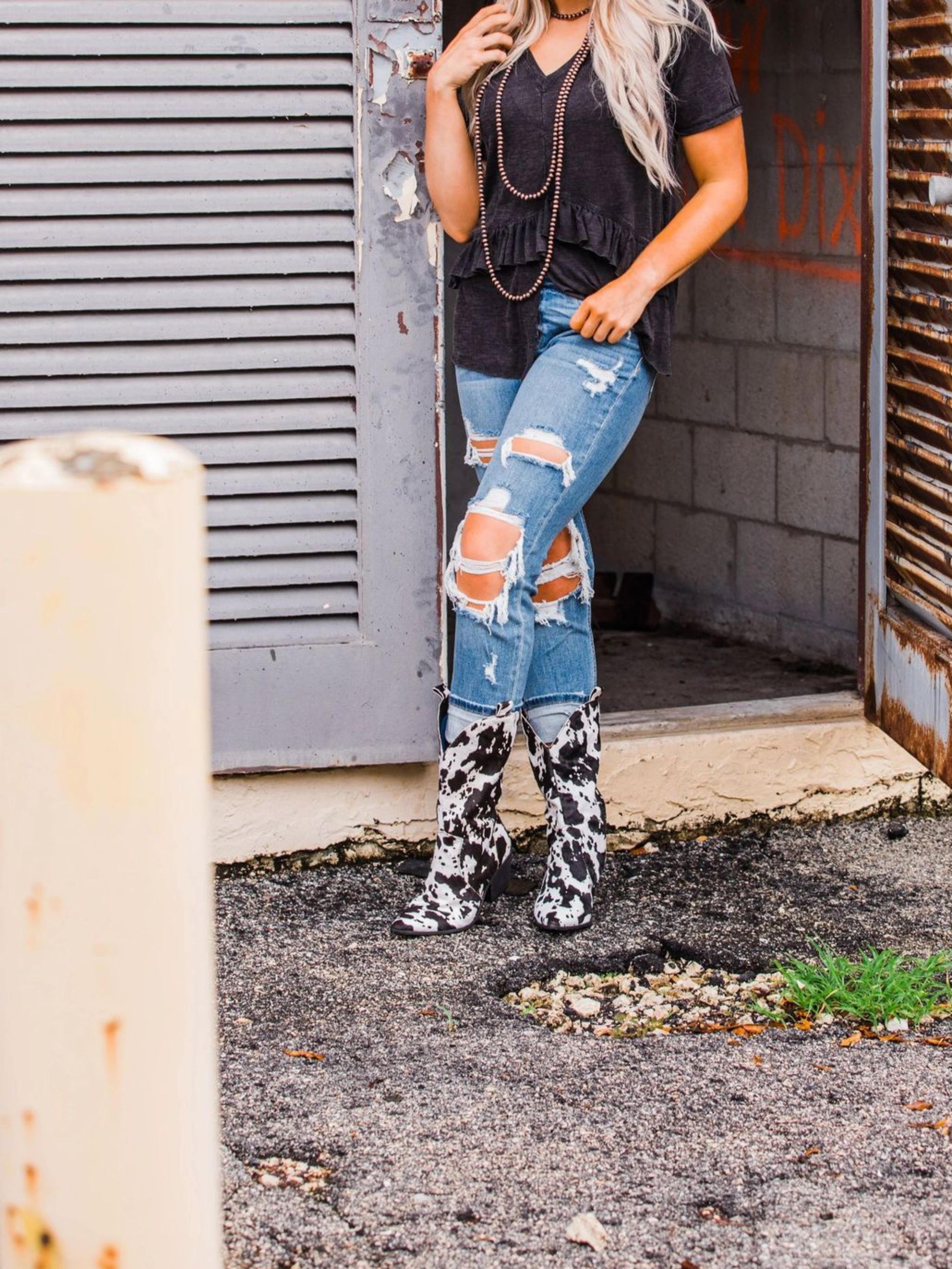 Cow Pattern Black & White Cowgirl Boots Wide Calf