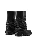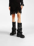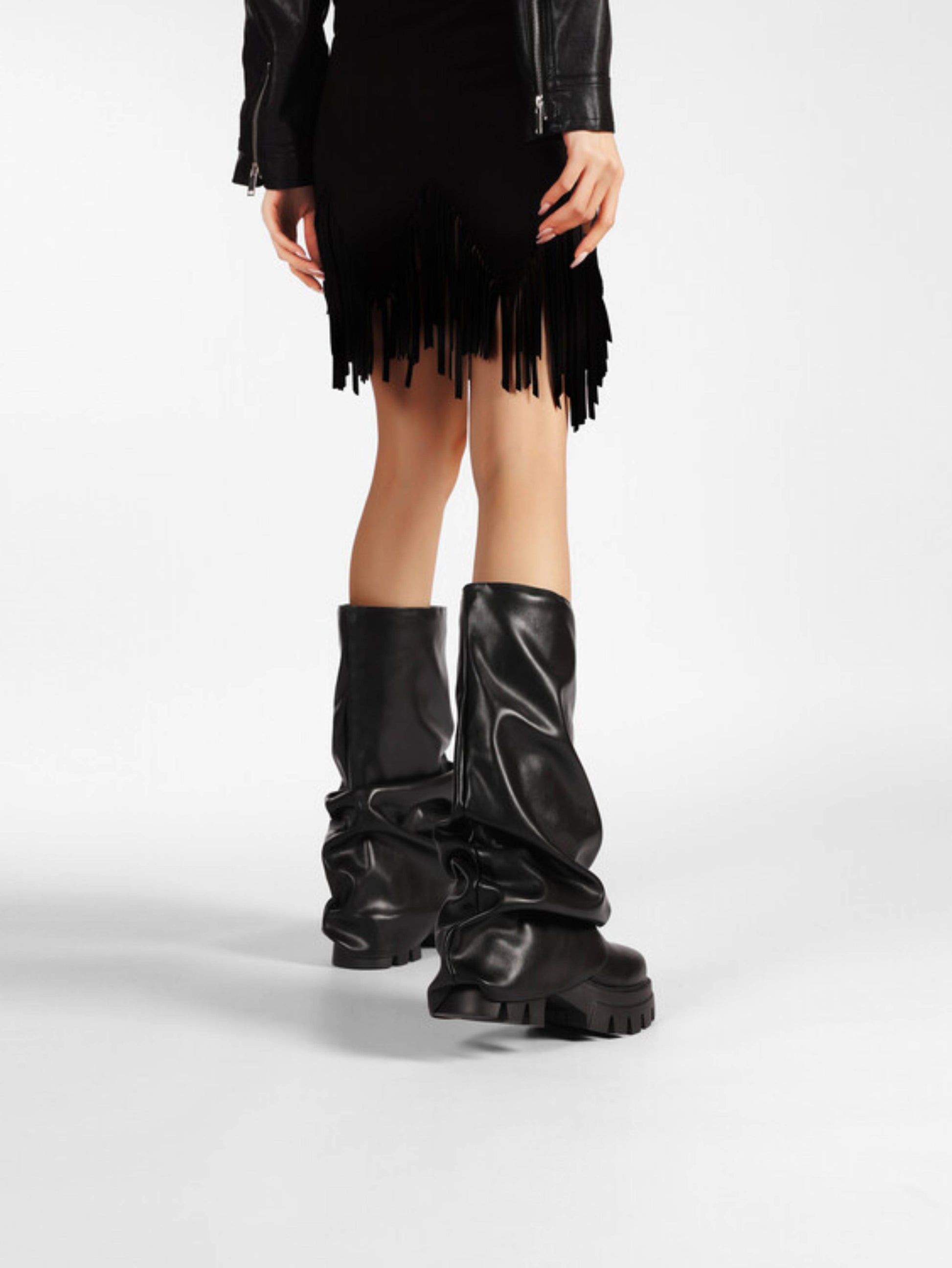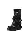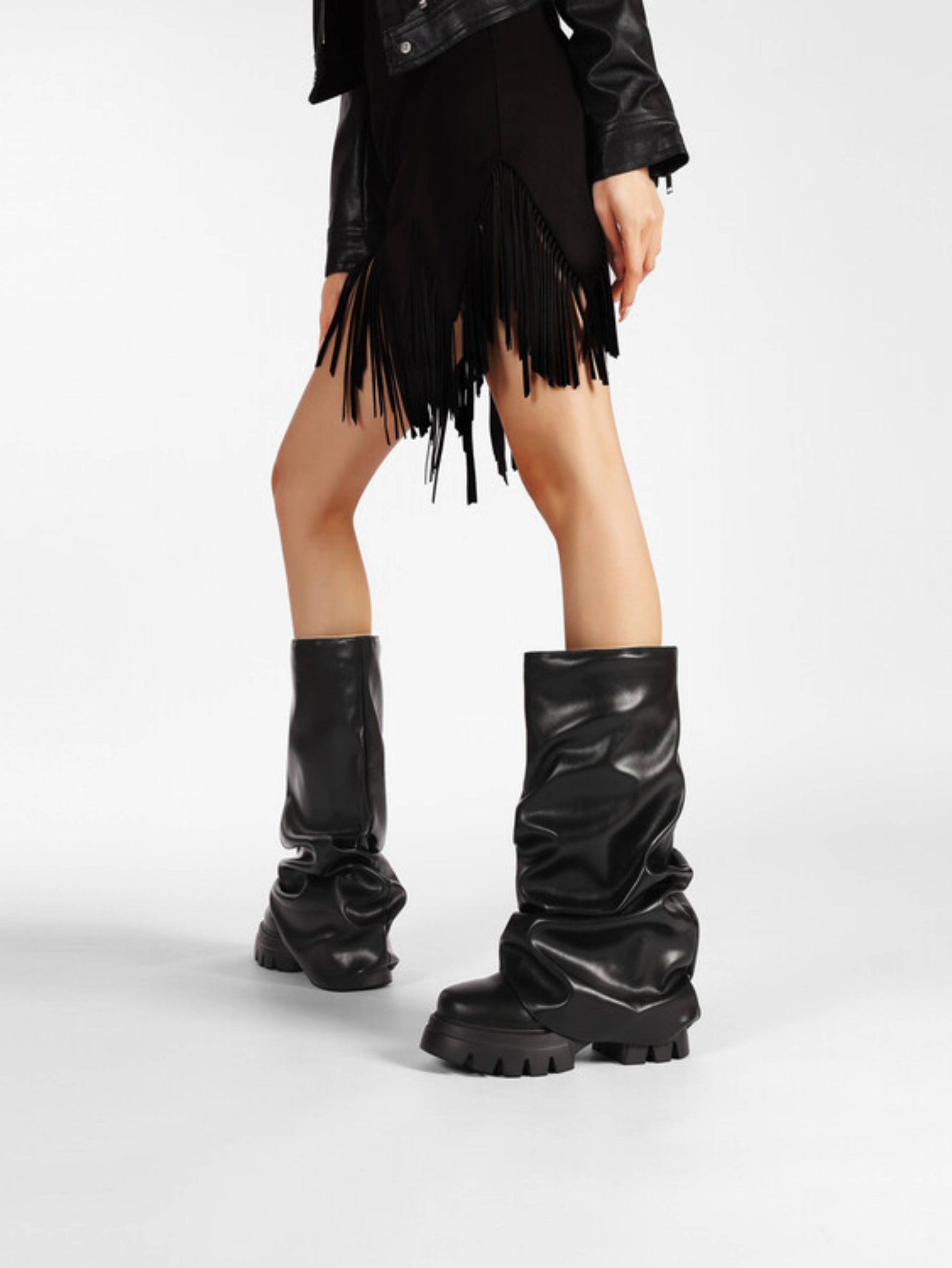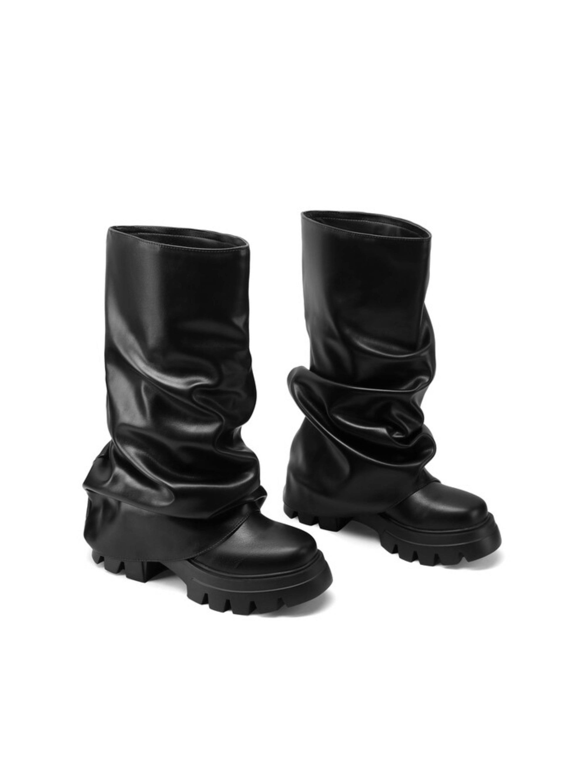 Chic Western Black Slouchy Fold Over Chunky Heels Platform Boots