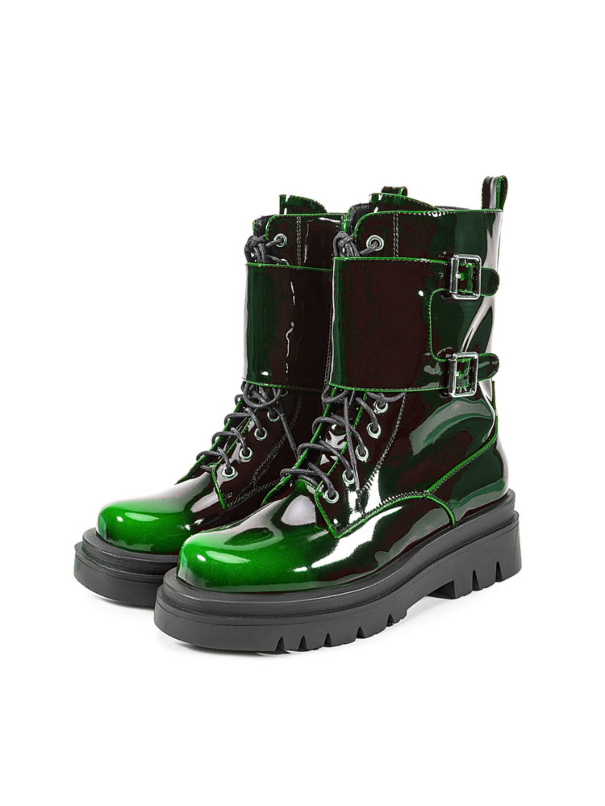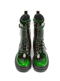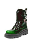 Chunky Heel Buckled Western Combat Ankle Boots Ombre Green