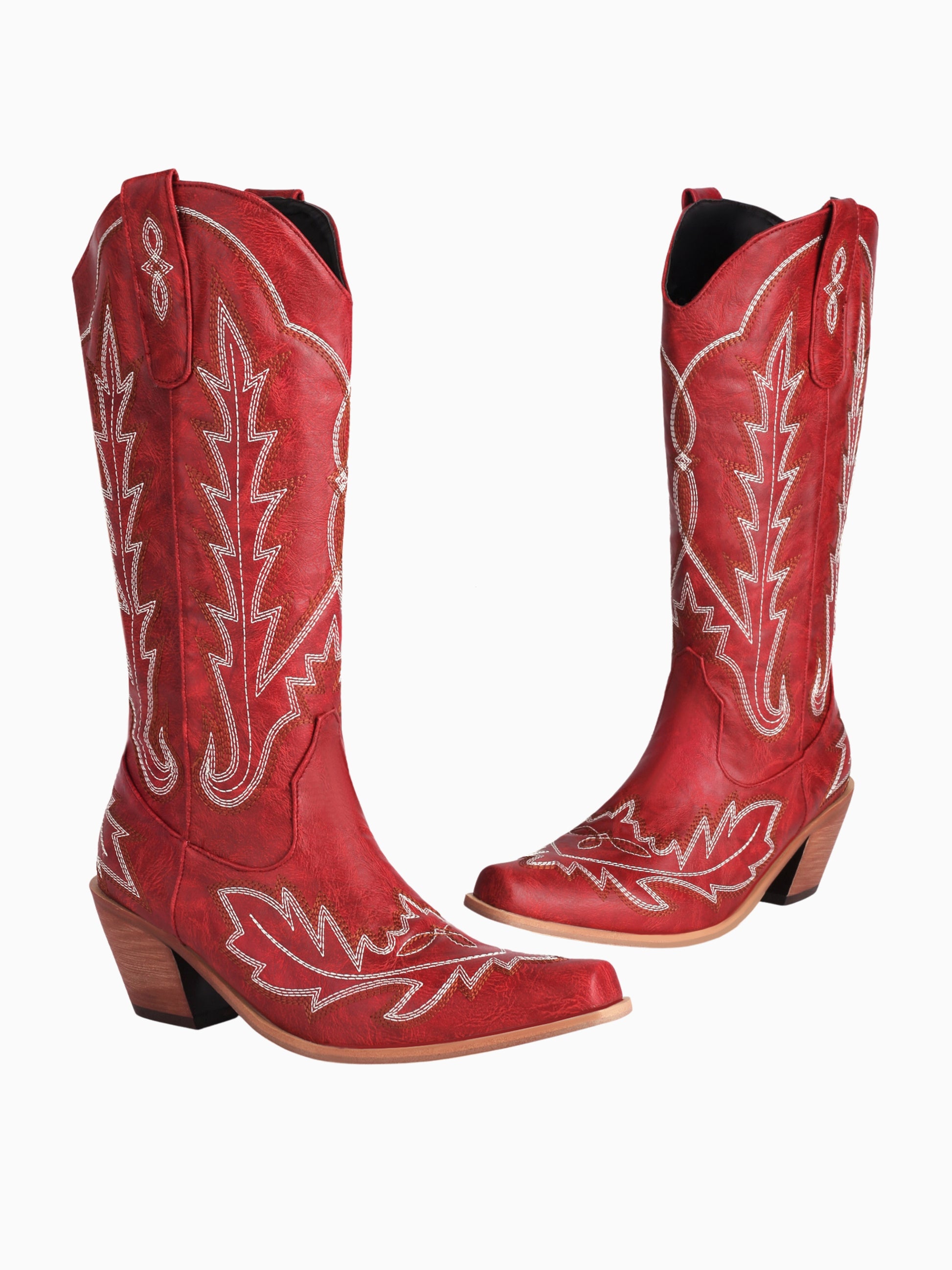 Classic Embroidered Red Cowgirl Boots Mid-Calf