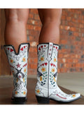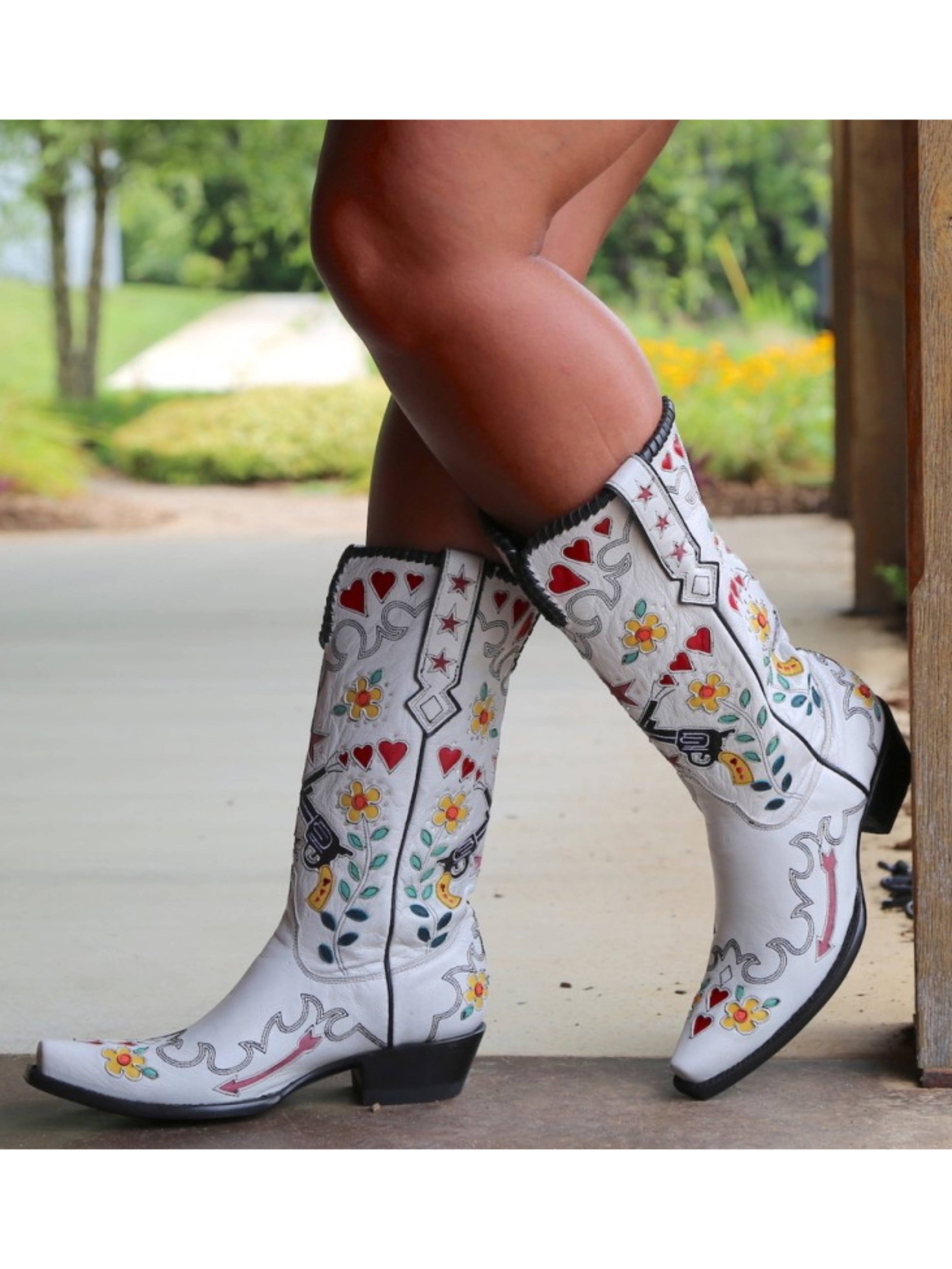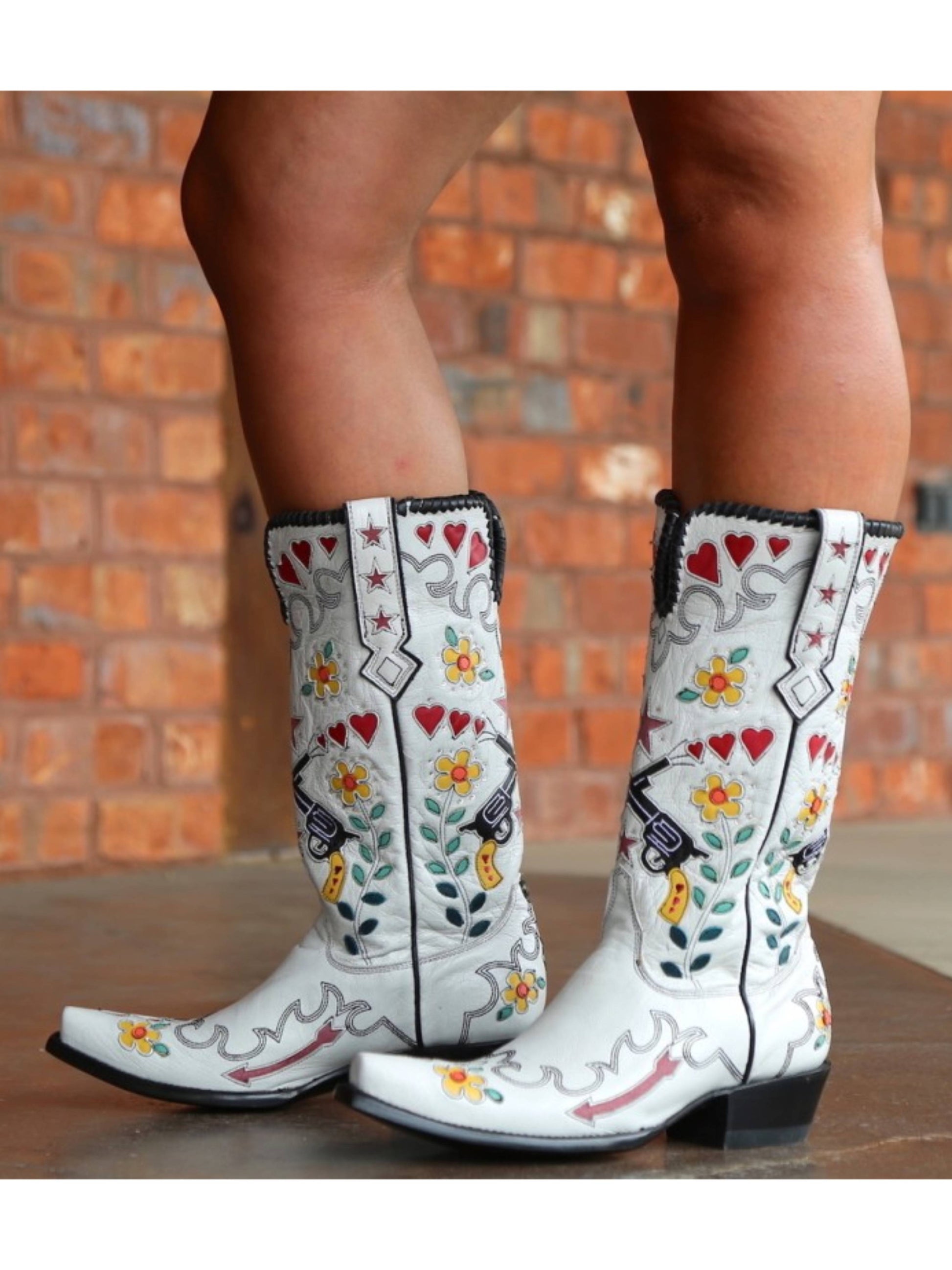 Classic Love Heart & Floral Inlay Snip Toe White Cowgirl Boots