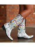 Classic white cowgirl boots featuring romantic love heart and floral inlay designs with a distinctive snip toe. Premium western footwear combining timeless style with intricate decorative stitching. Perfect for country weddings, rodeos, and statement fashion.