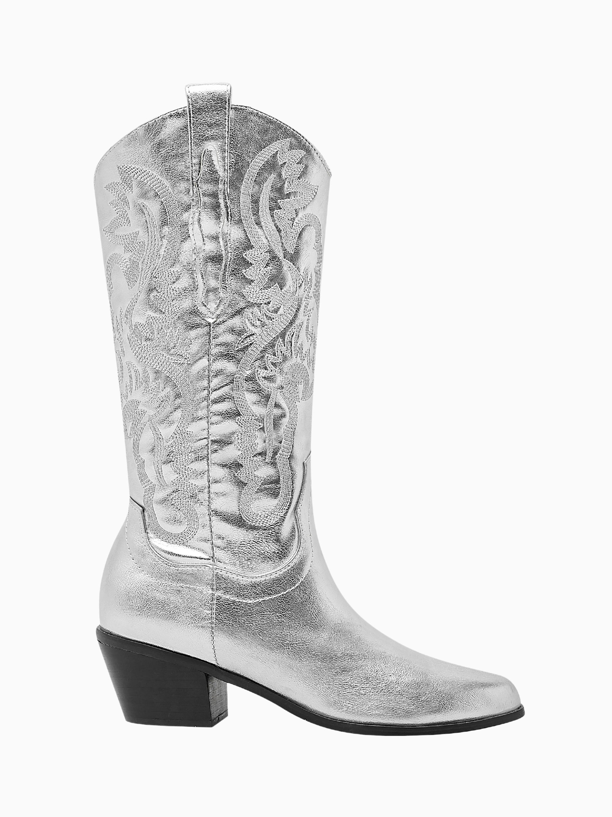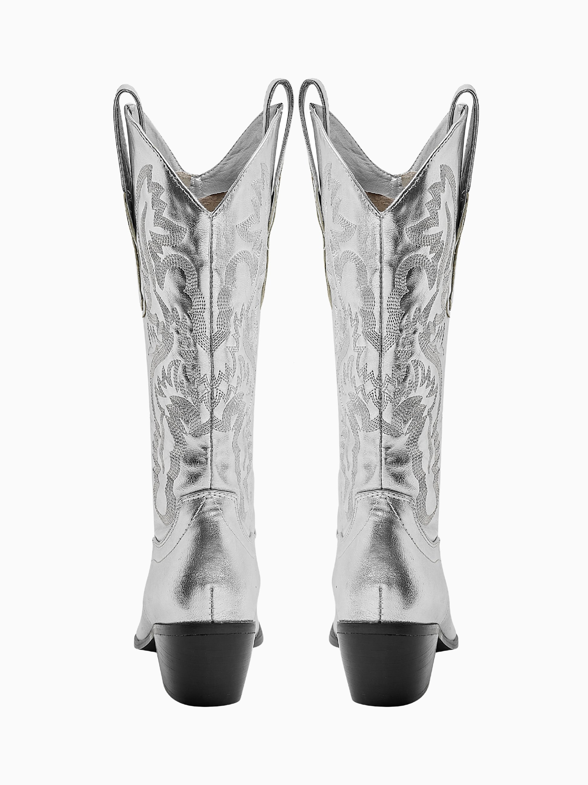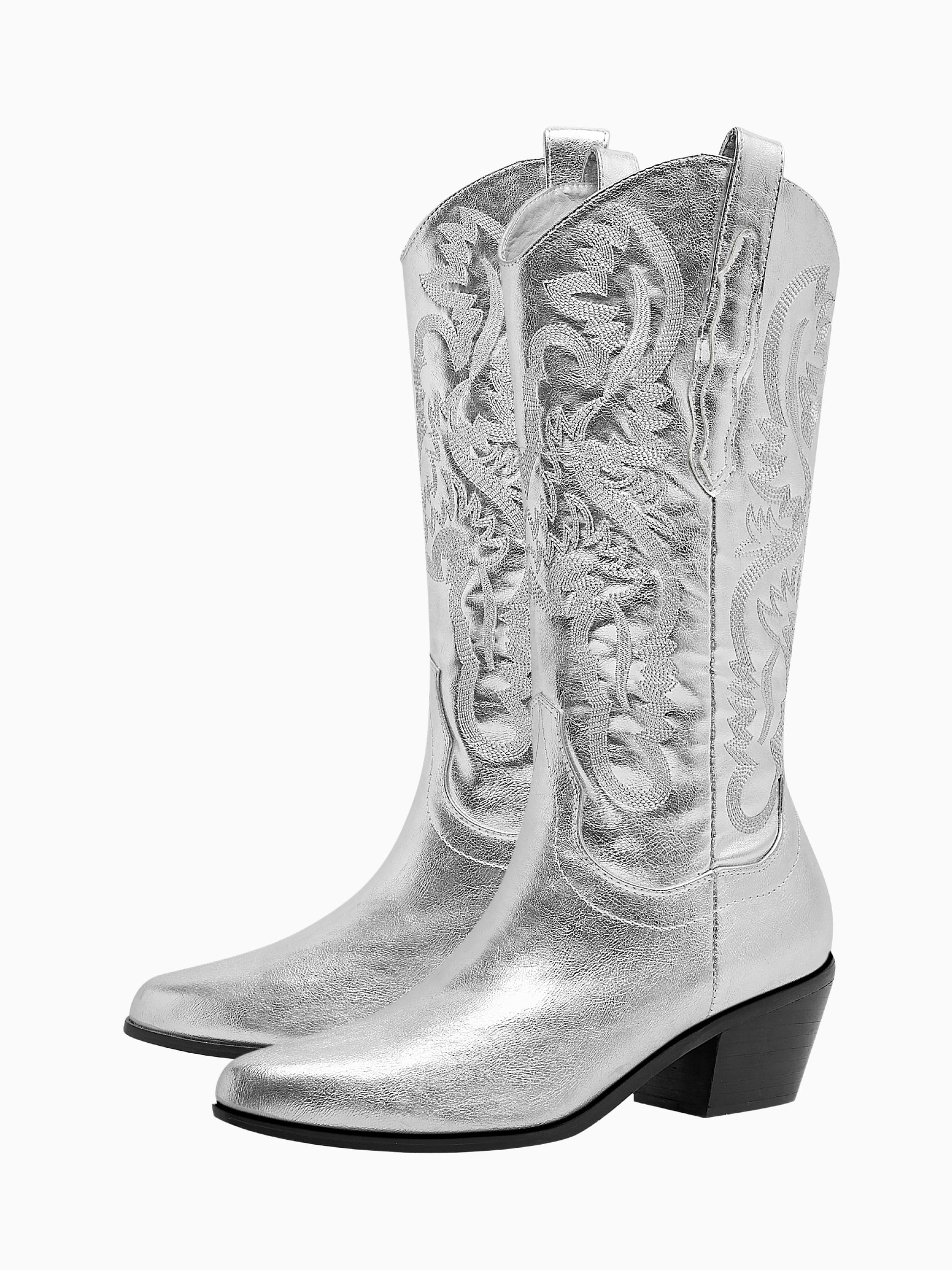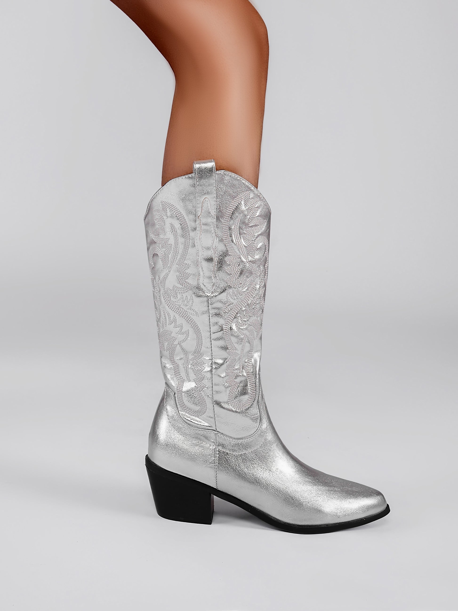 Classic Pointed Toe Metallic Silver Cowgirl Boots for Women