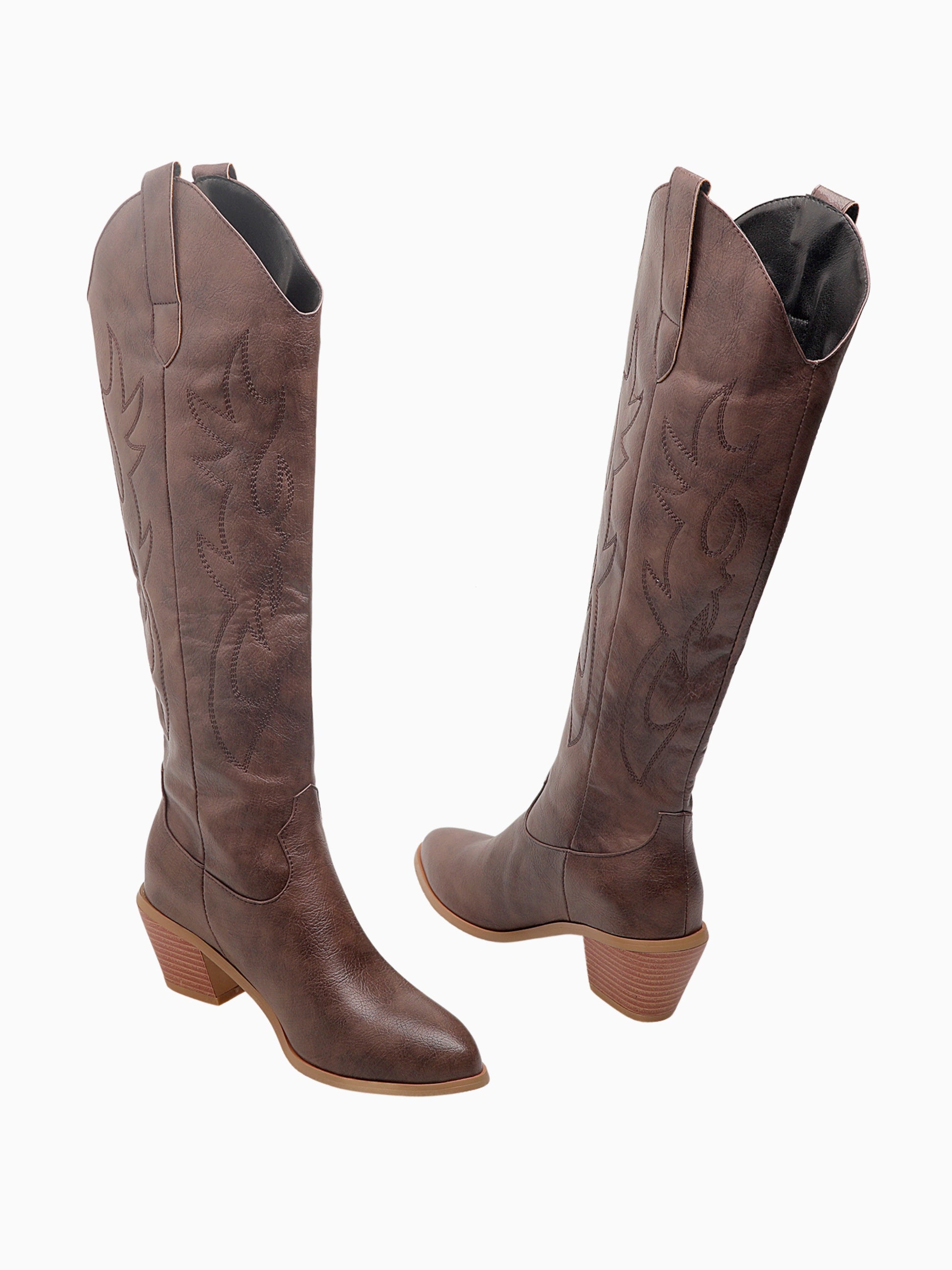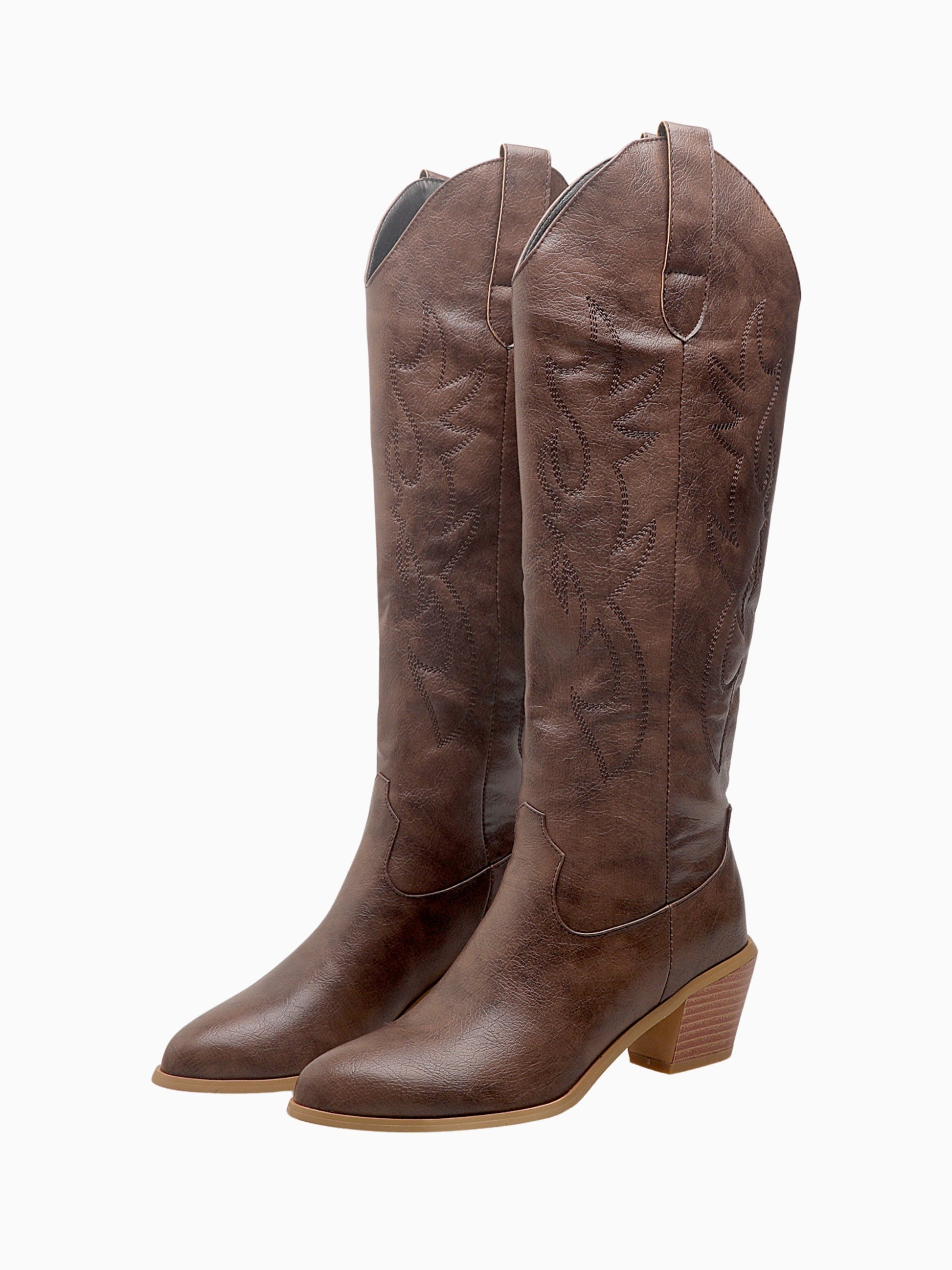 Dark Brown Embroidered Cowgirl Boots showcase classic Western design and traditional stitching patterns. The rustic finish and comfortable stacked heel deliver authentic cowgirl style, perfect for ranch life and casual everyday wear.
