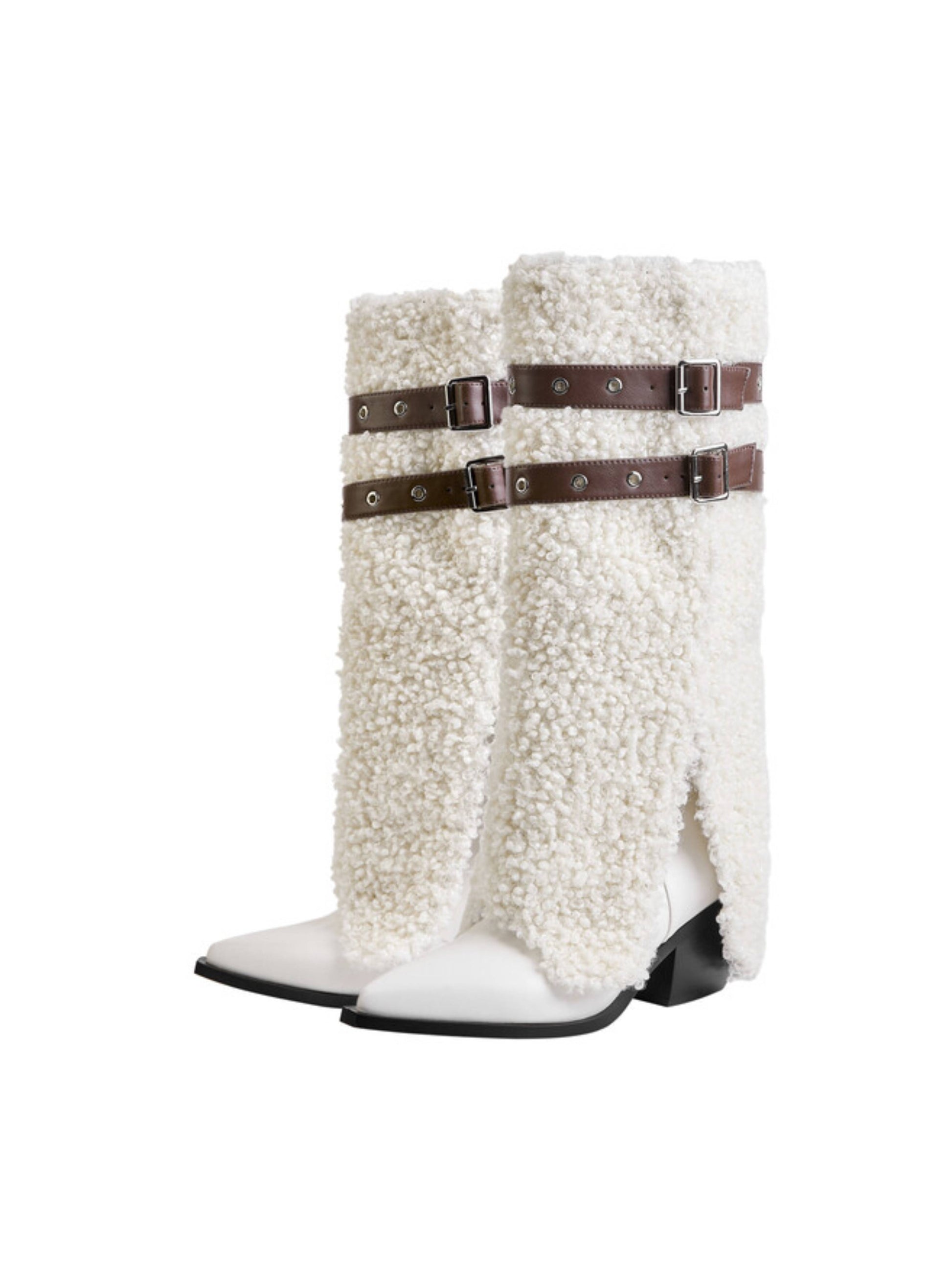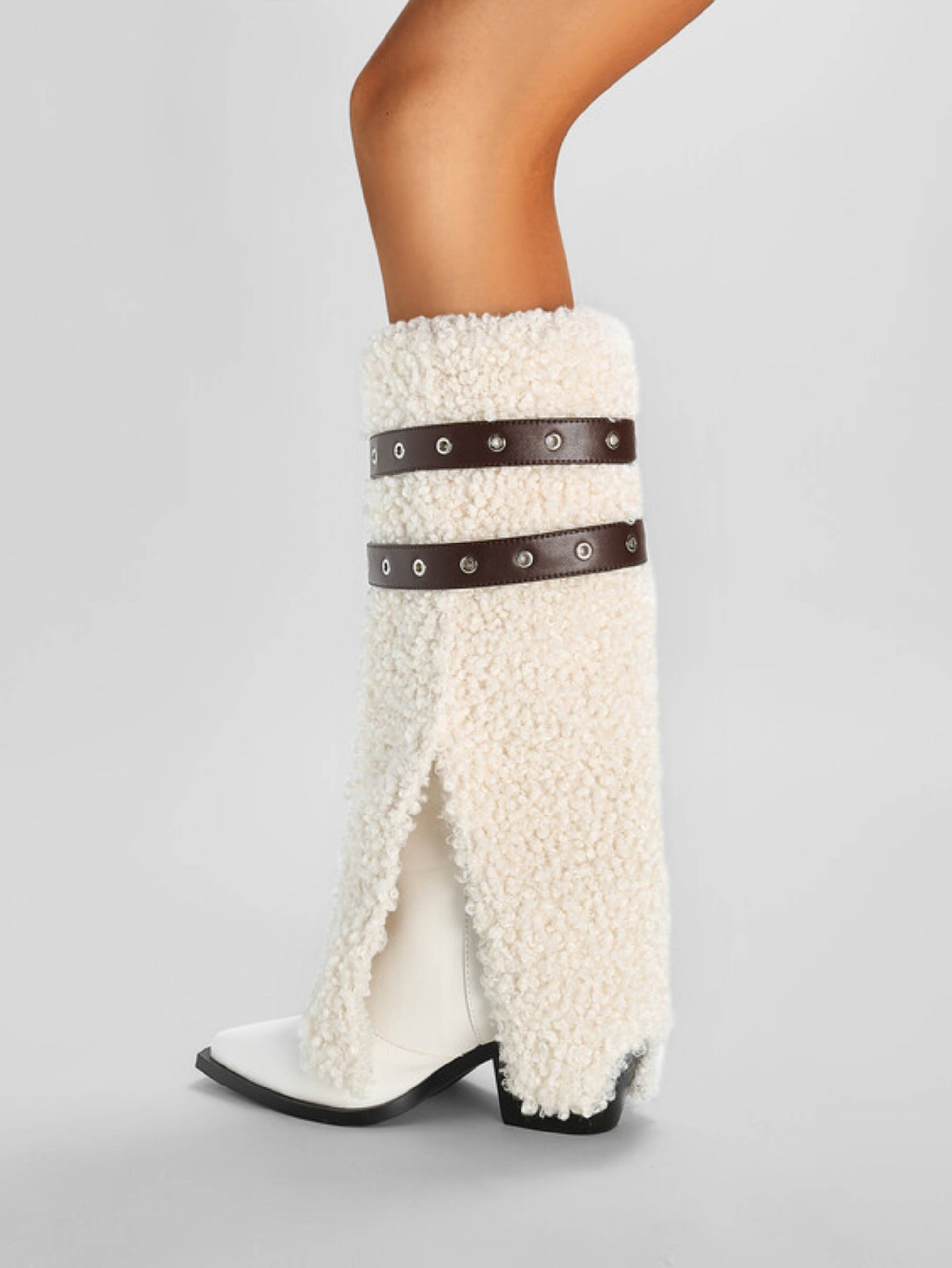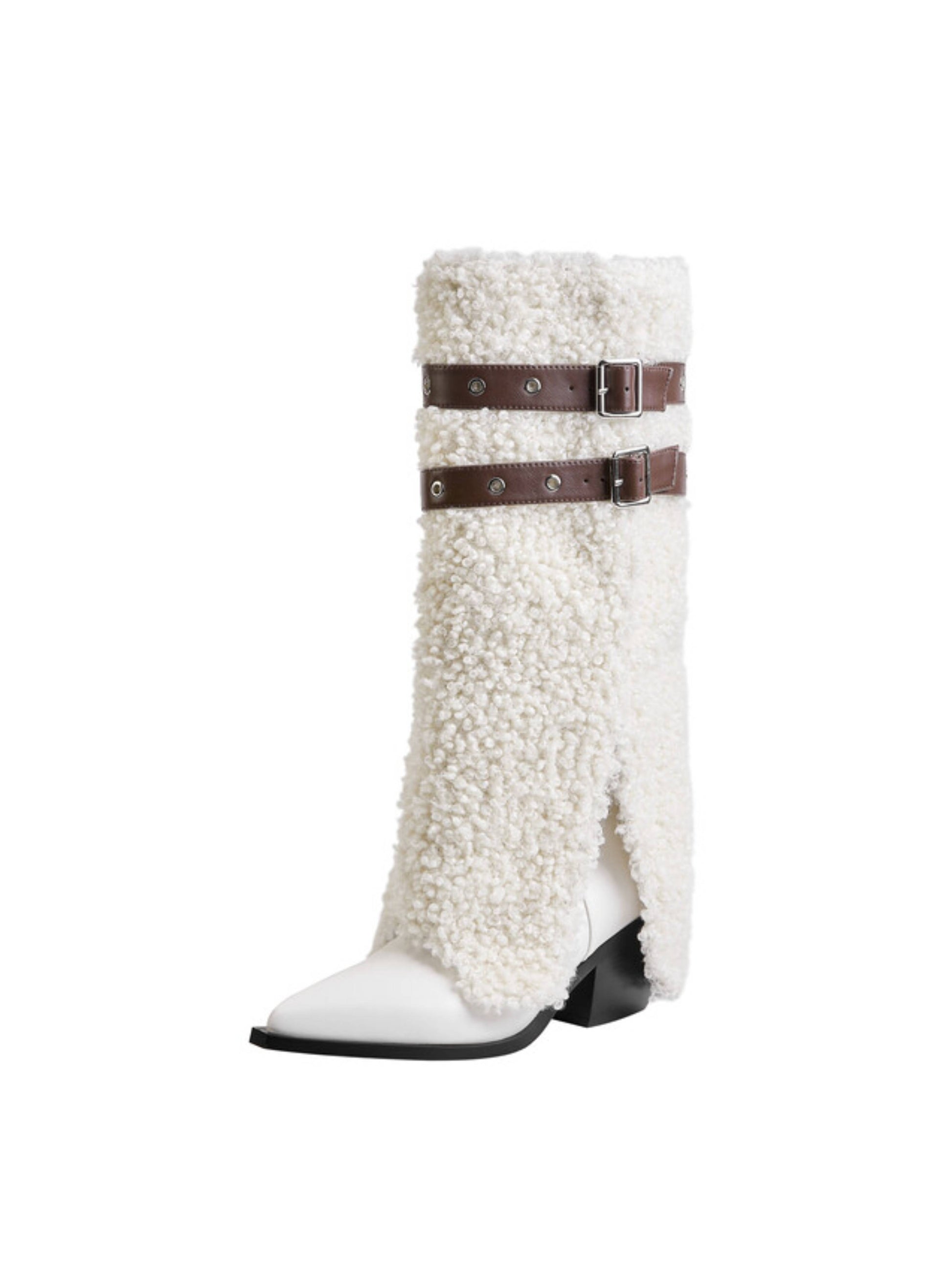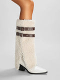 Cowgirl Furry Fold Over White Long Boots for Winter