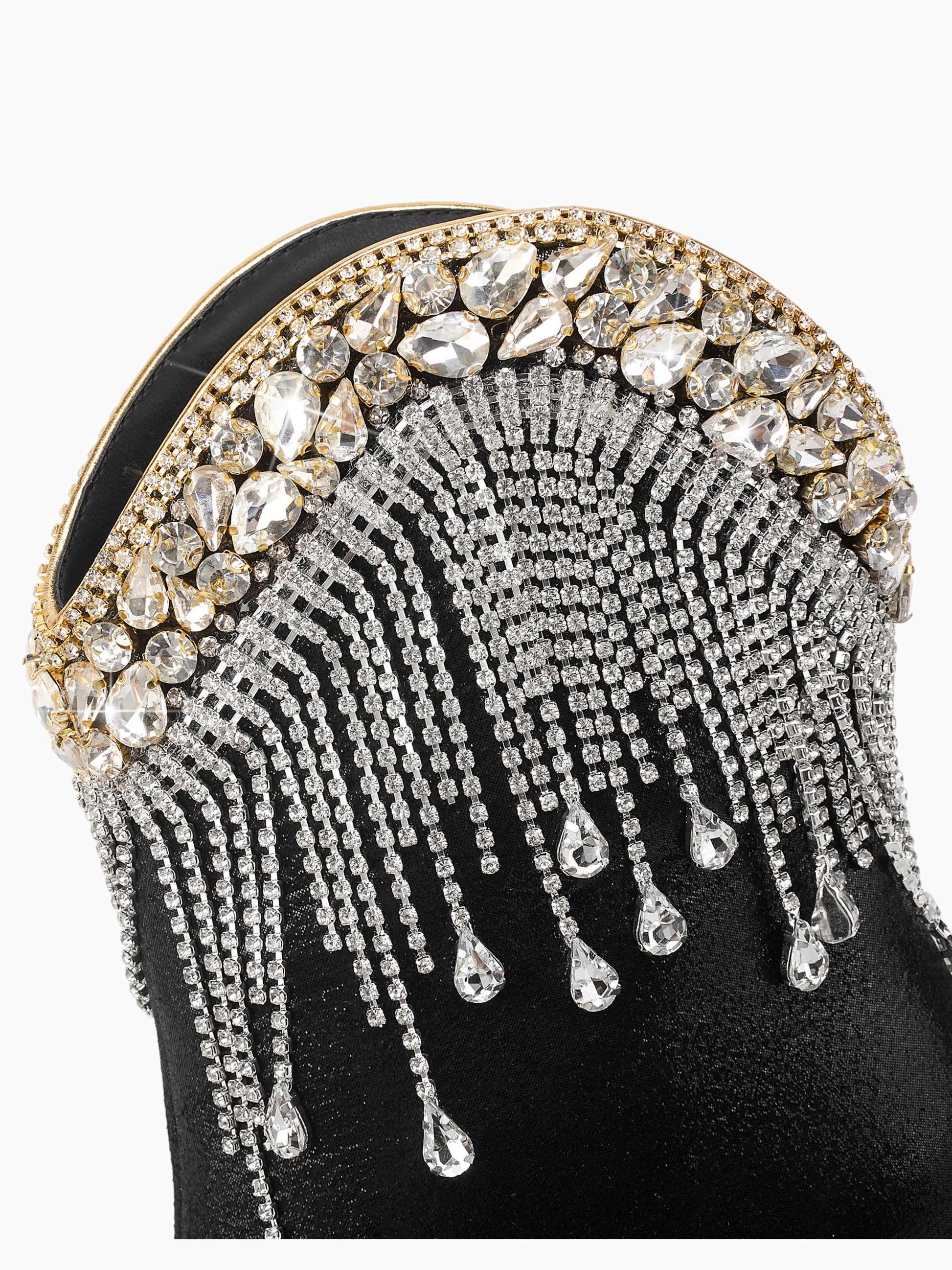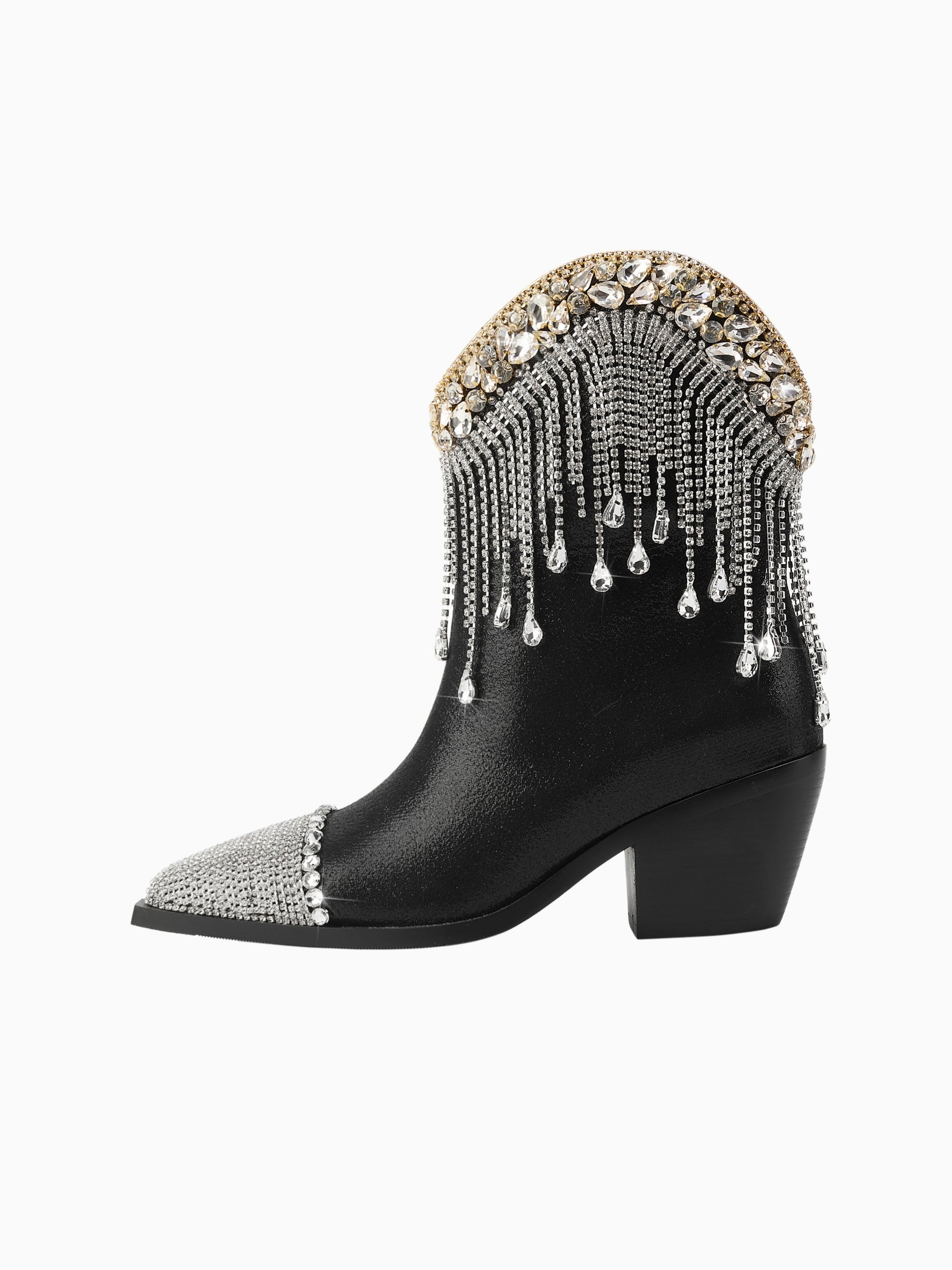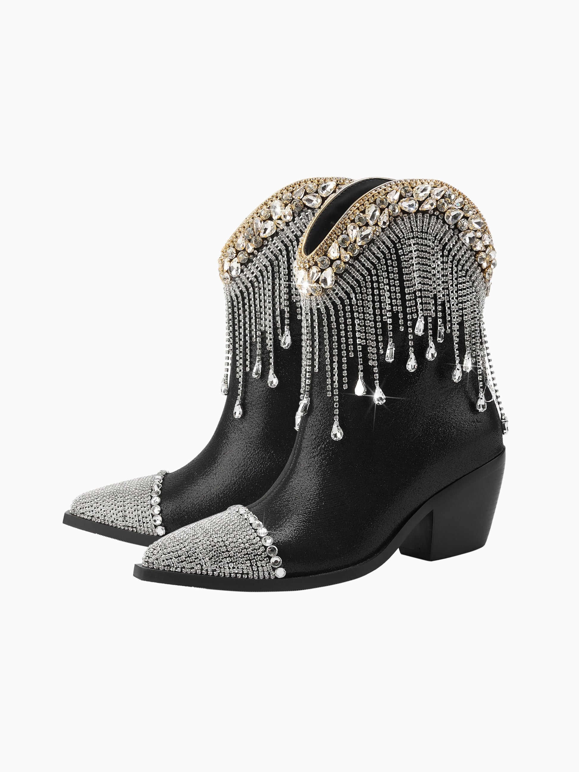 Crystal Cascade Black Cowgirl Ankle Booties