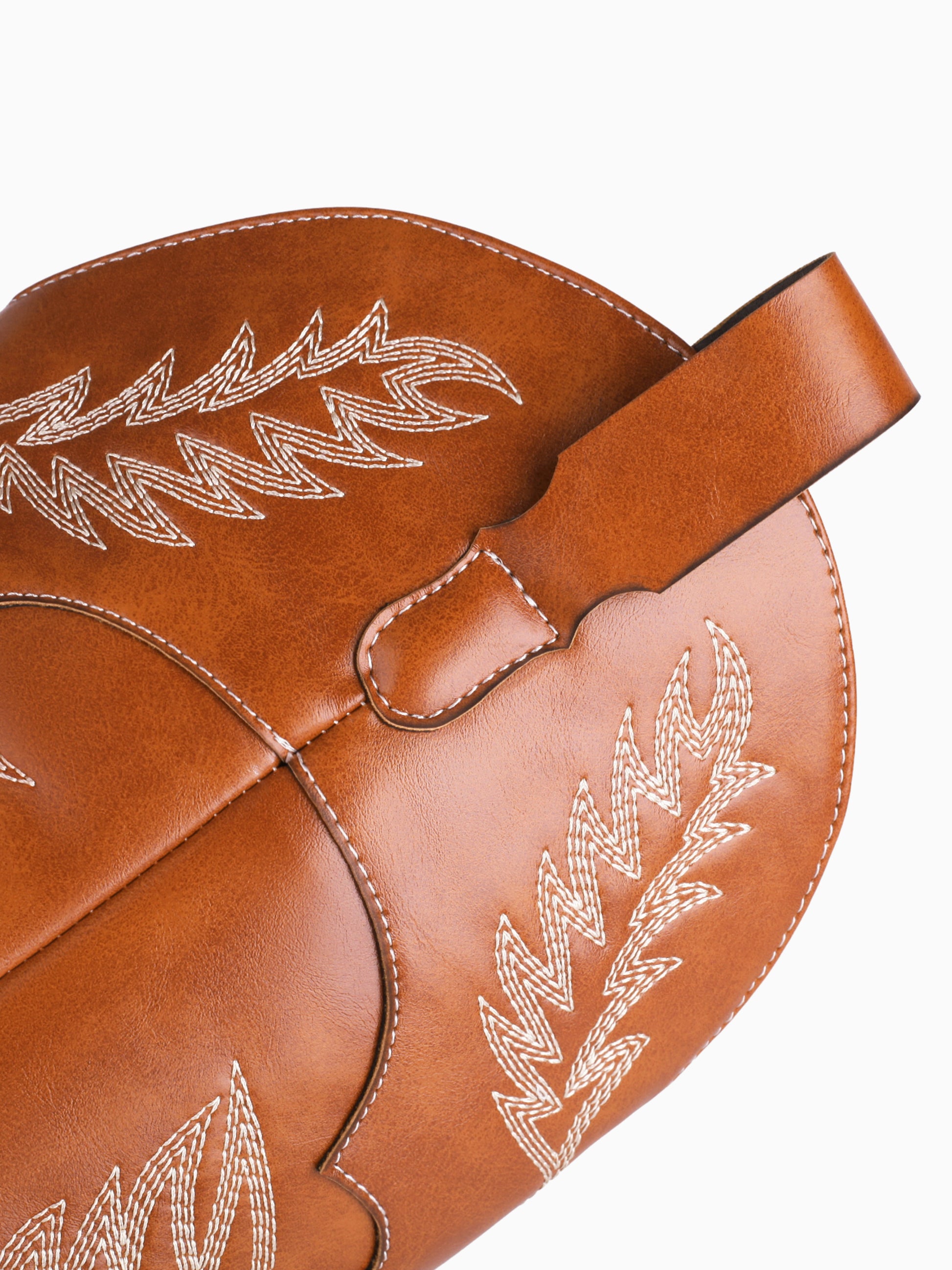 Majestic Western knee-high boots in brown feature bold eagle wing embroidery and a low-profile comfort heel design.