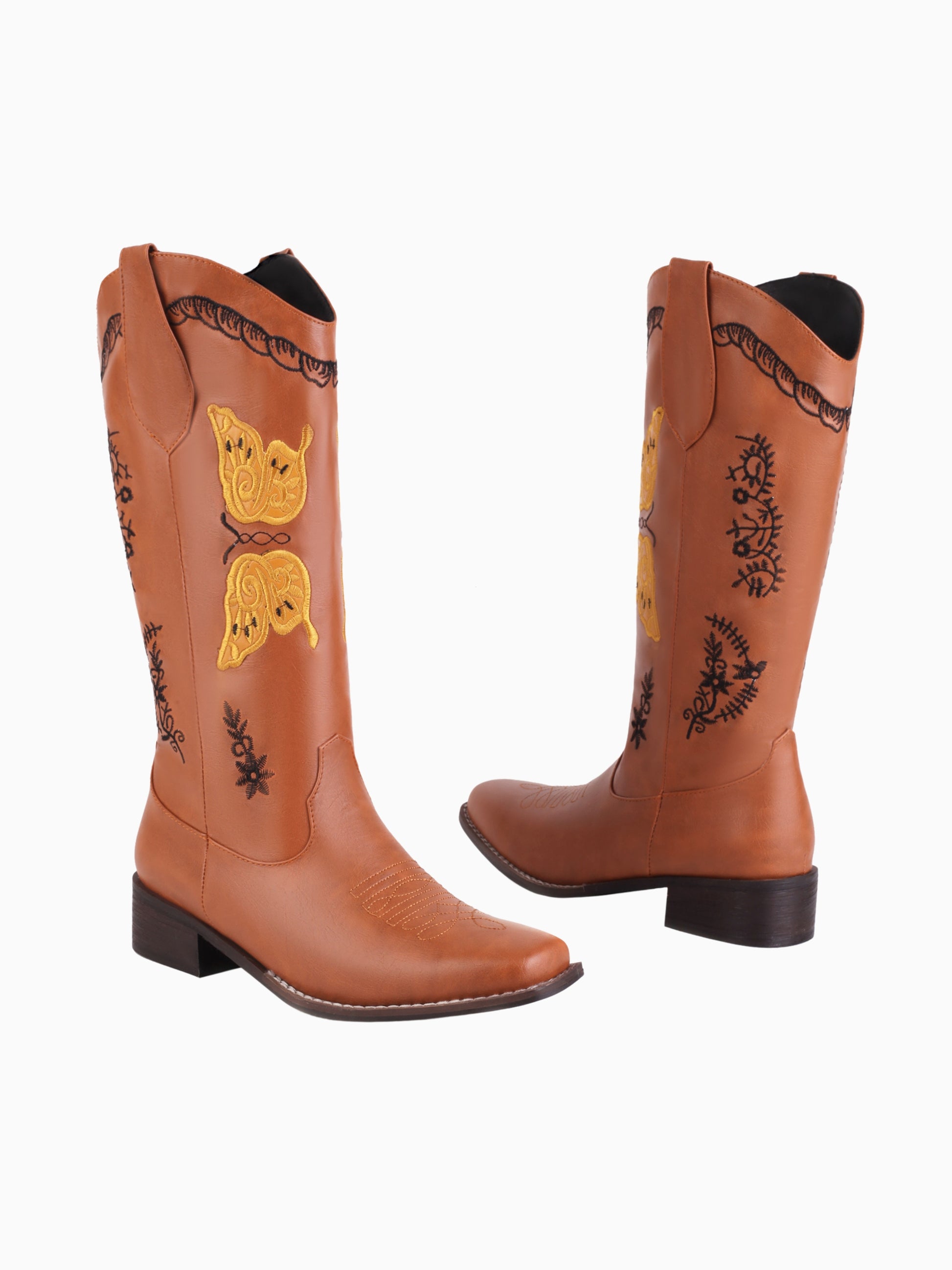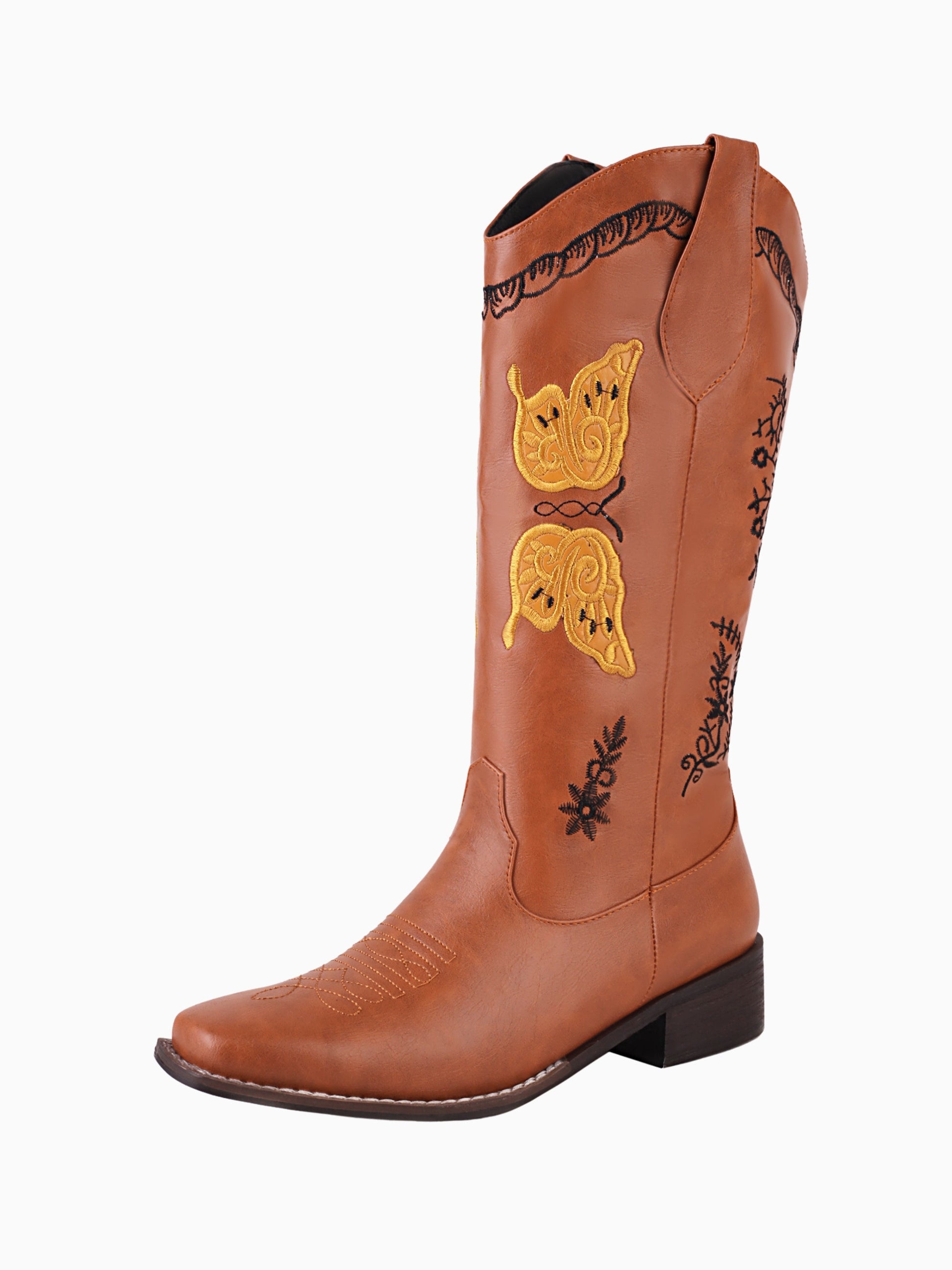Enchanting Floral & Butterfly Embroidered Cowgirl Boots