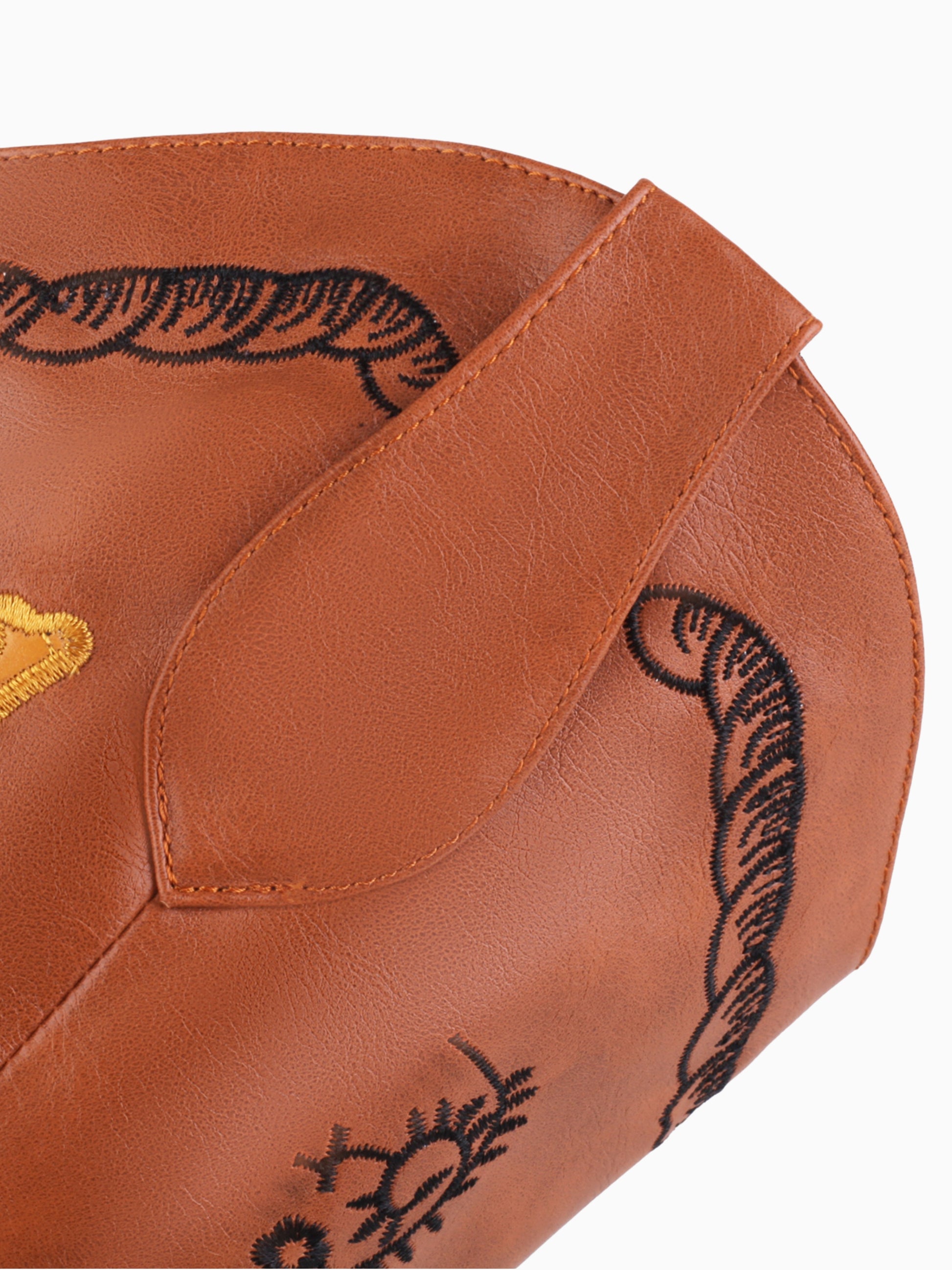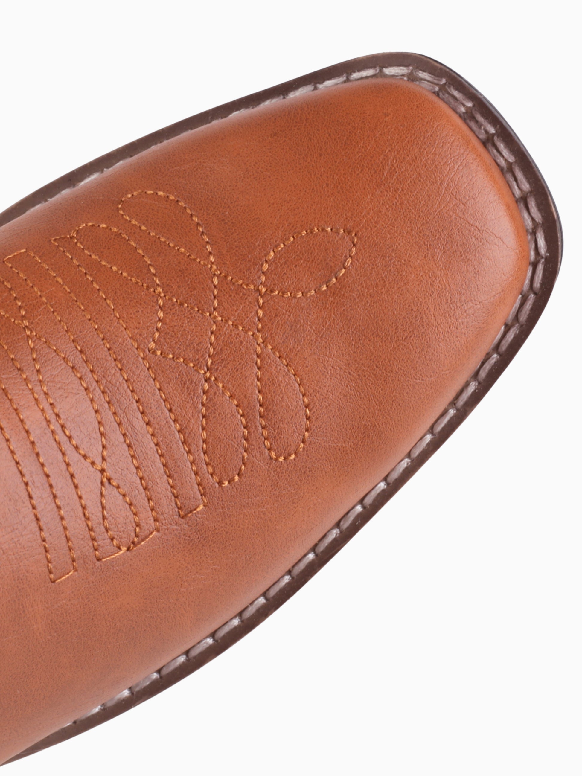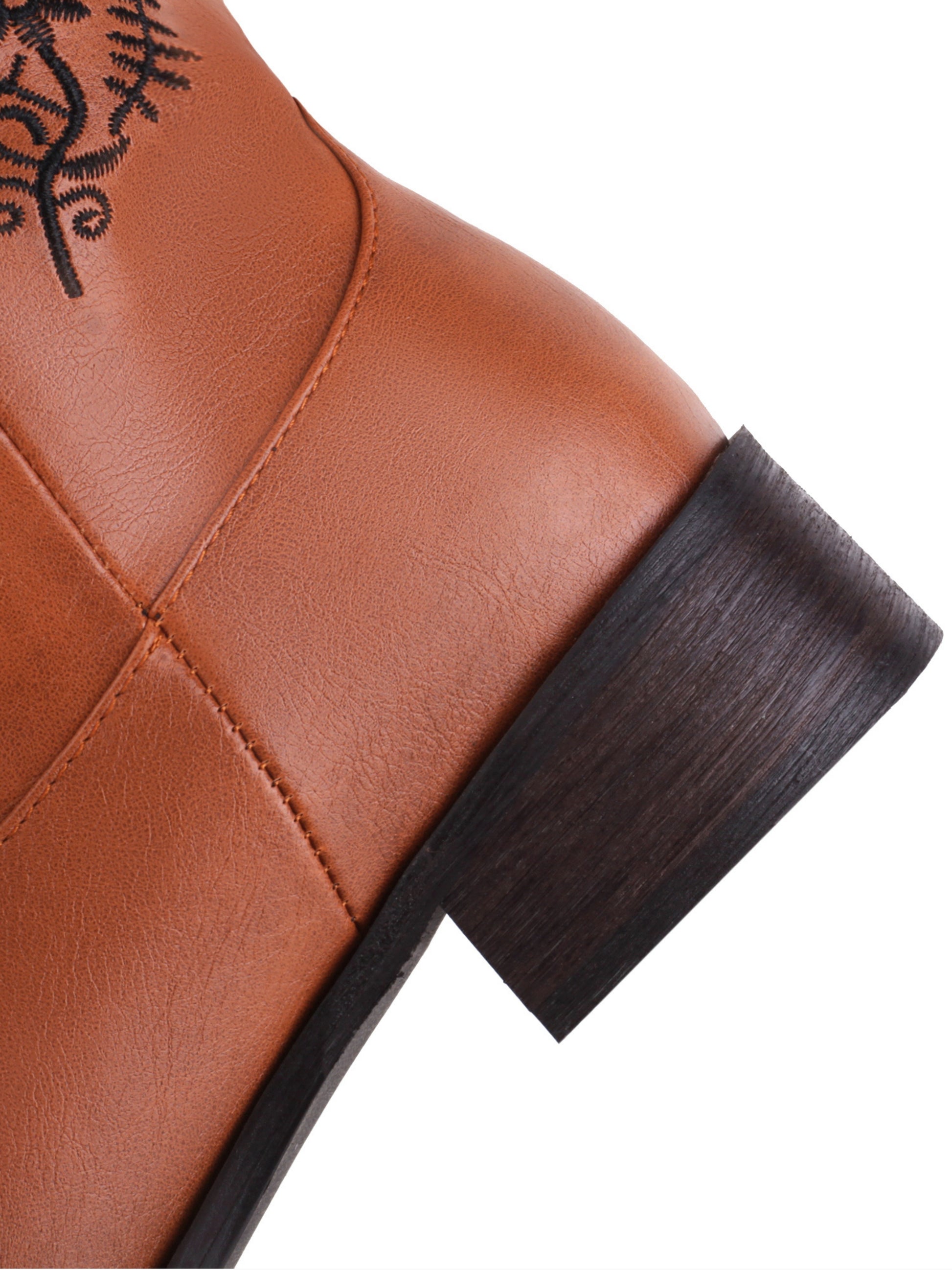 The brown cowgirl boots showcase an enchanting floral embroidered design, blending playful whimsy with the timeless Western aesthetic.