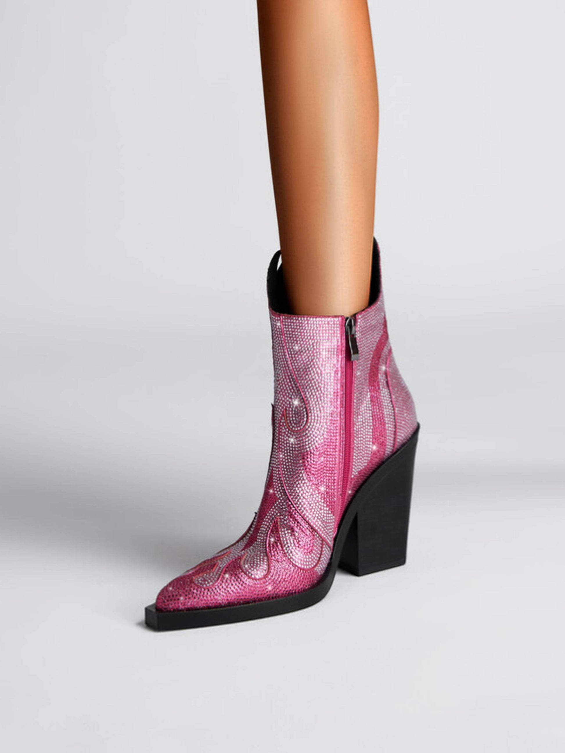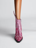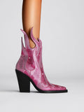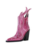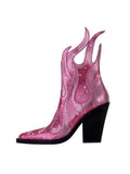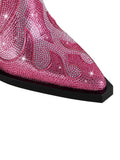 Fashion Rhinestone Flame Shape Western Heel Pink Cowgirl Boots