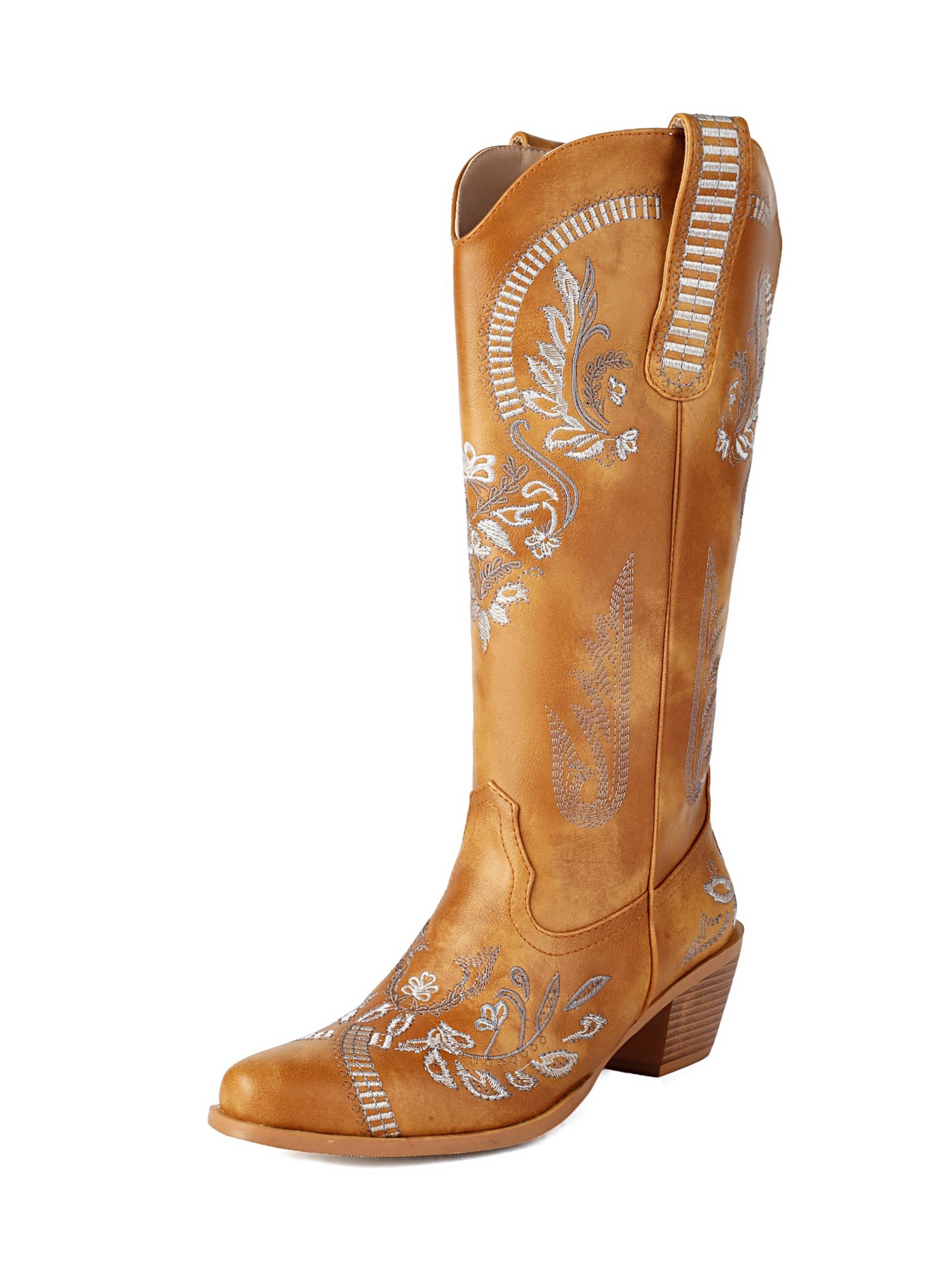 Flora Embroidered Mustard Brown Cowgirl Boots