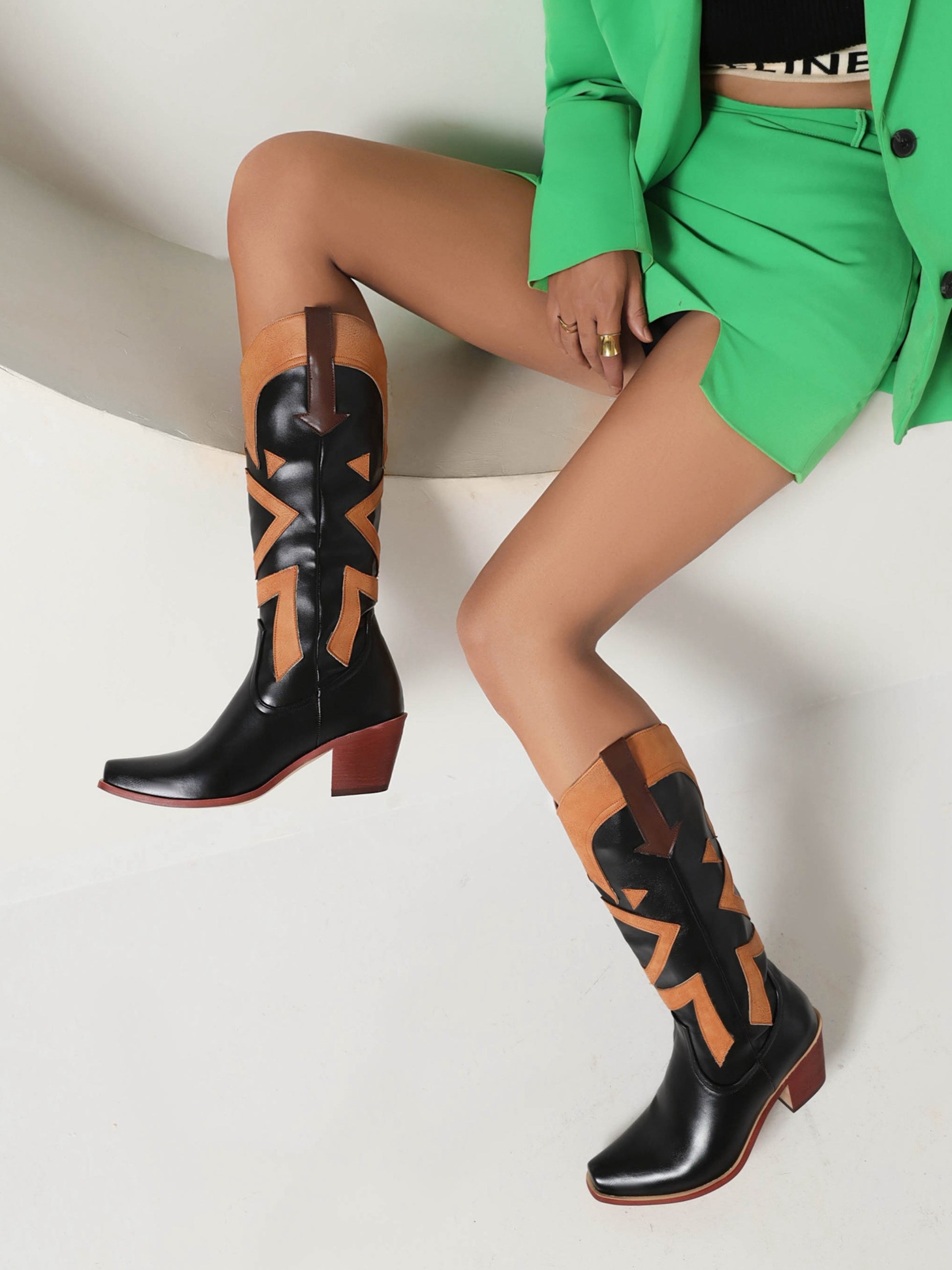 Geometric Patchwork High Heel Cowgirl Boots