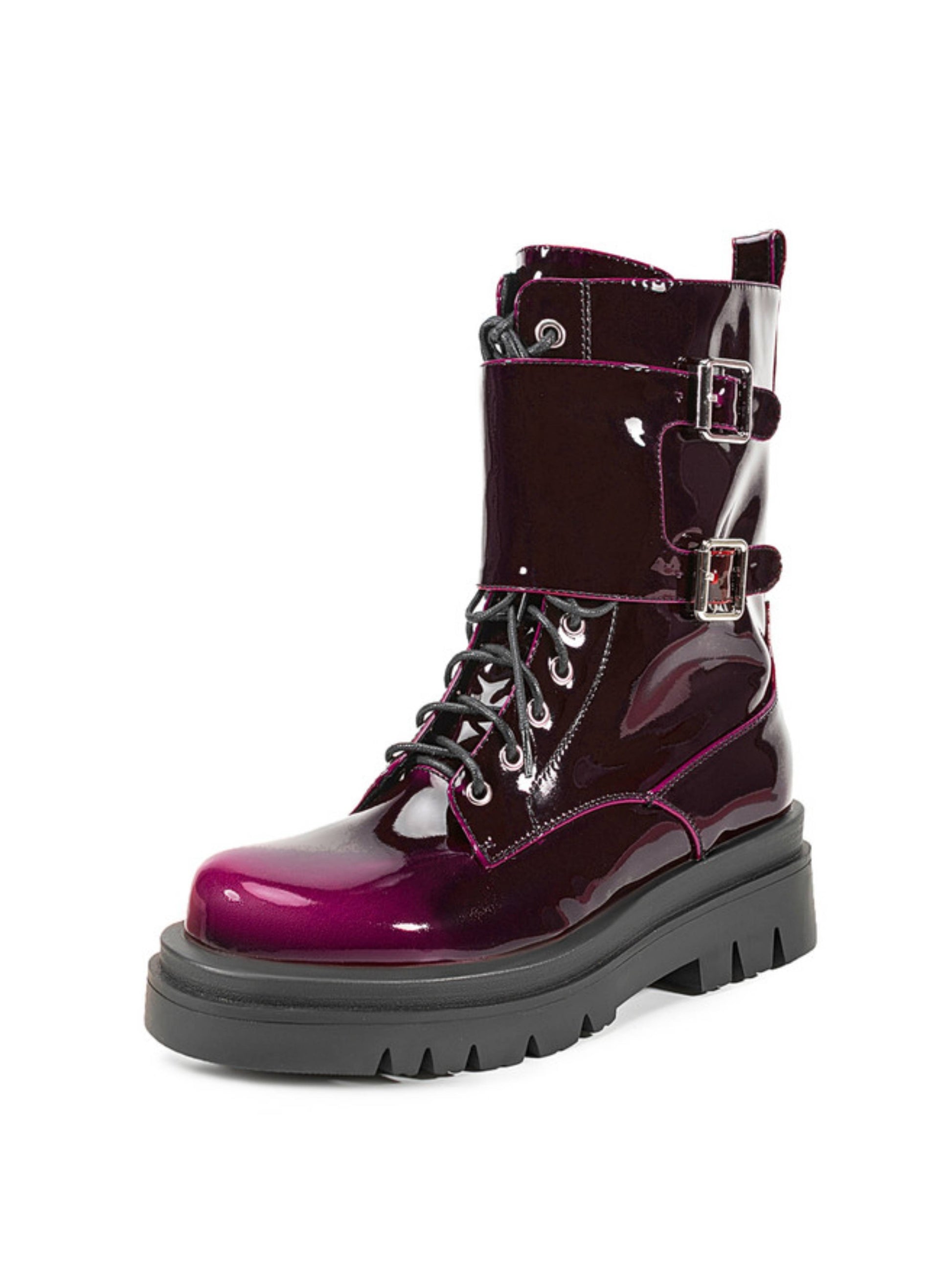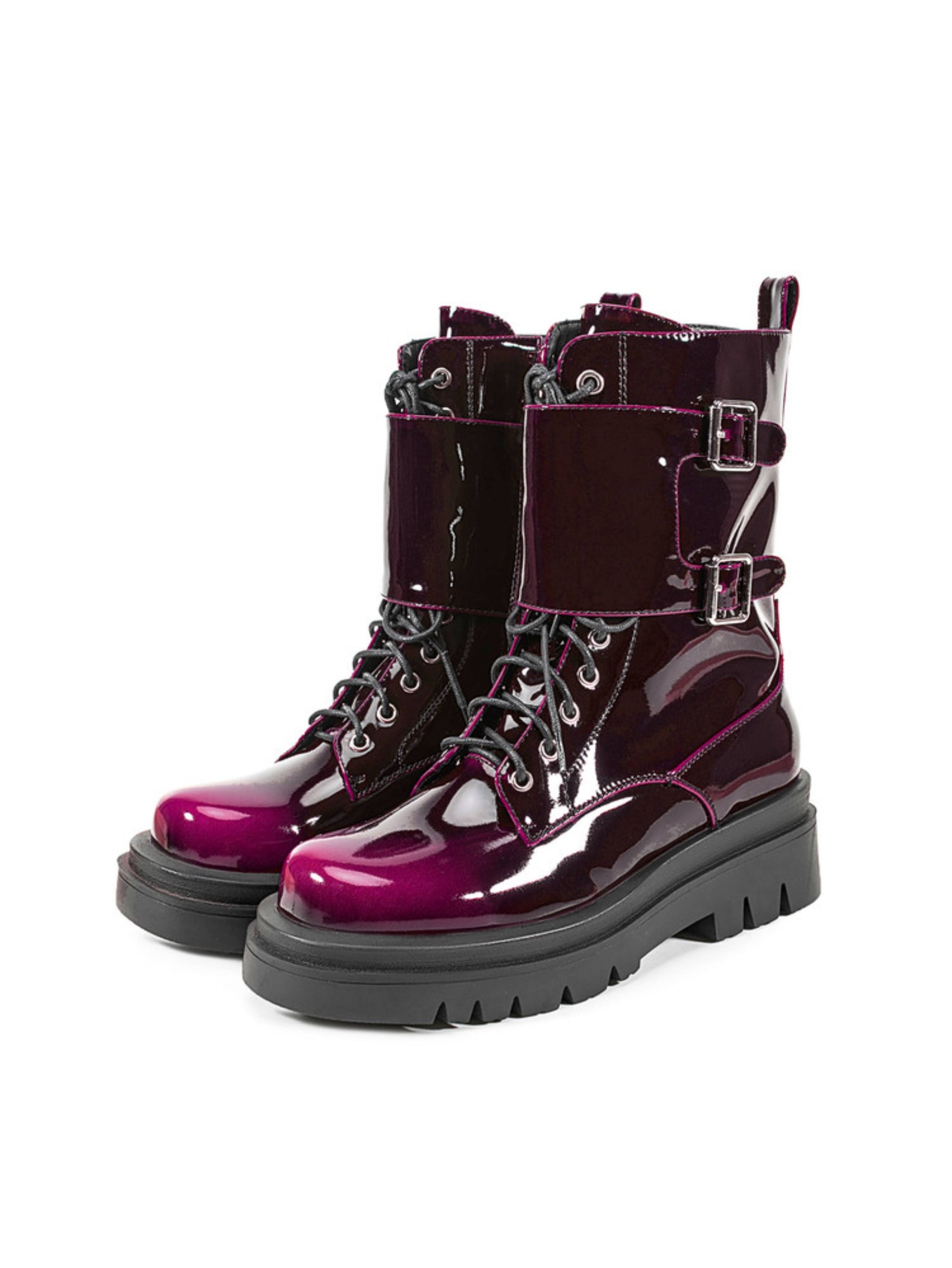 Gradient Purple Chunky Heel Buckled Combat Boots for Women