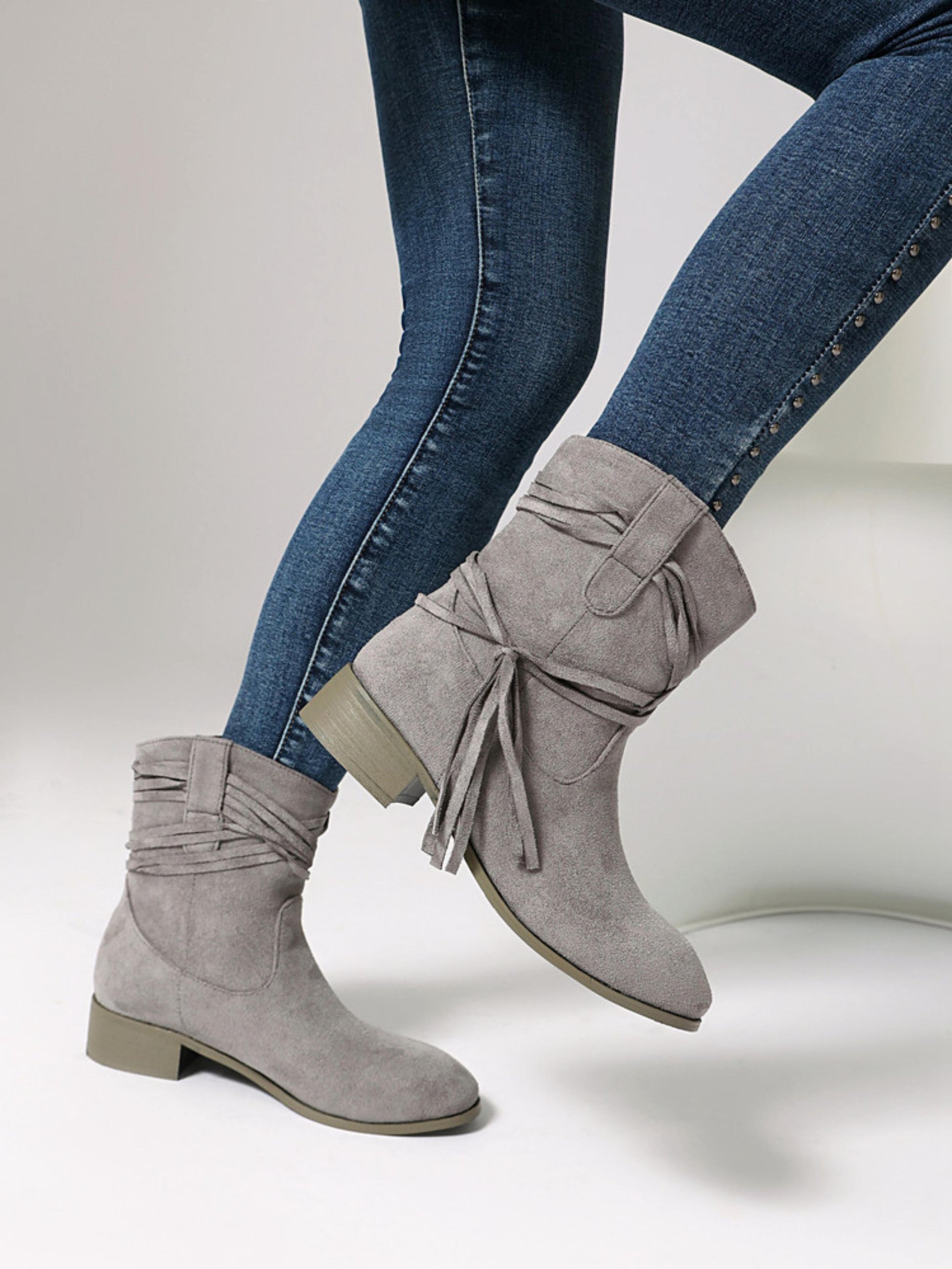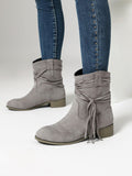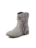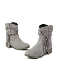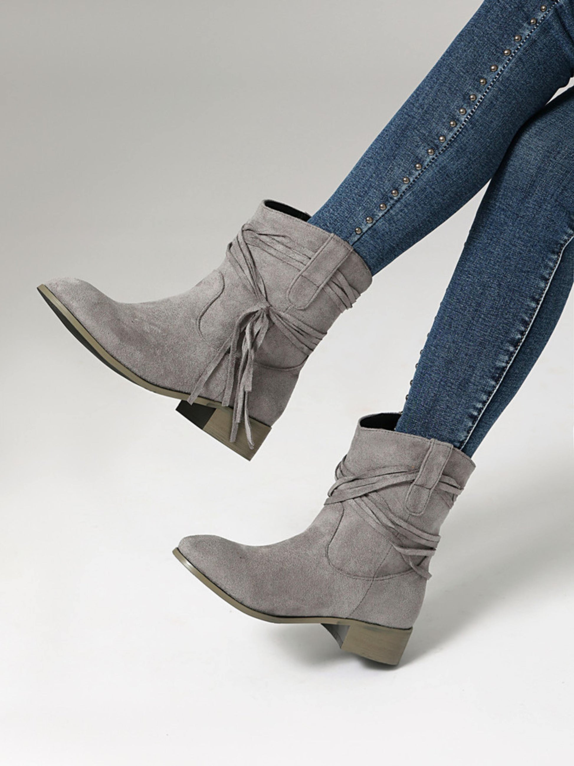 Grey Tied Fringe Low Heel Short Cowgirl Boots
