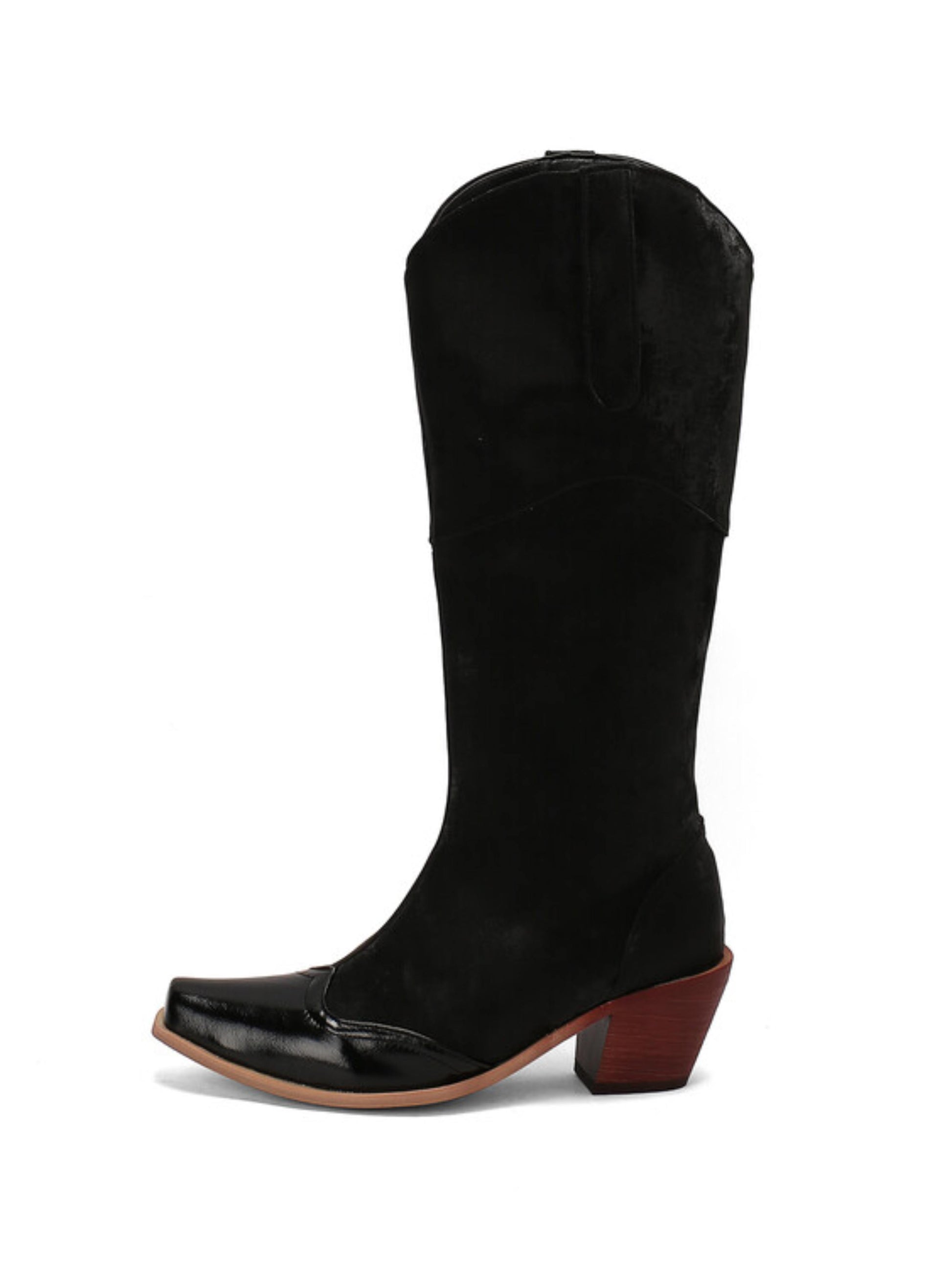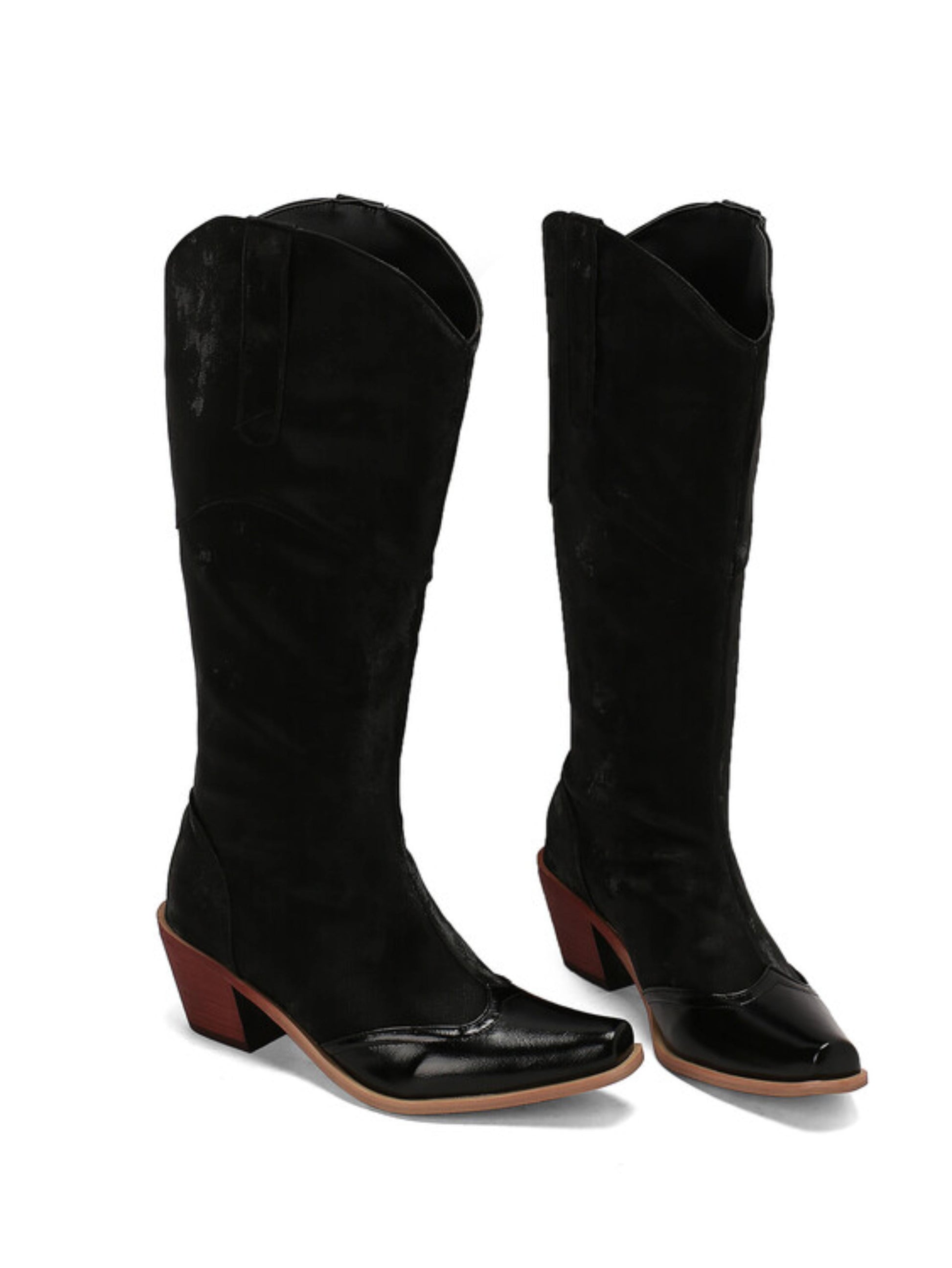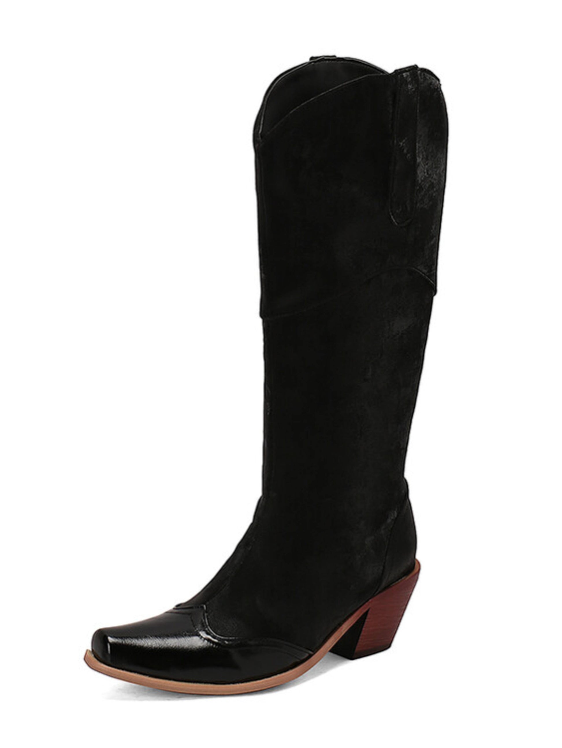 Knee-High Squared Snip Toe Black Cowgirl Boots