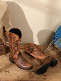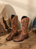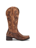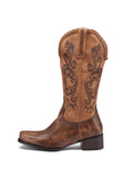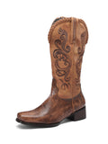 Lizard Pattern Embossed Sqaure Toe Embroidered Brown Cowgirl Boots