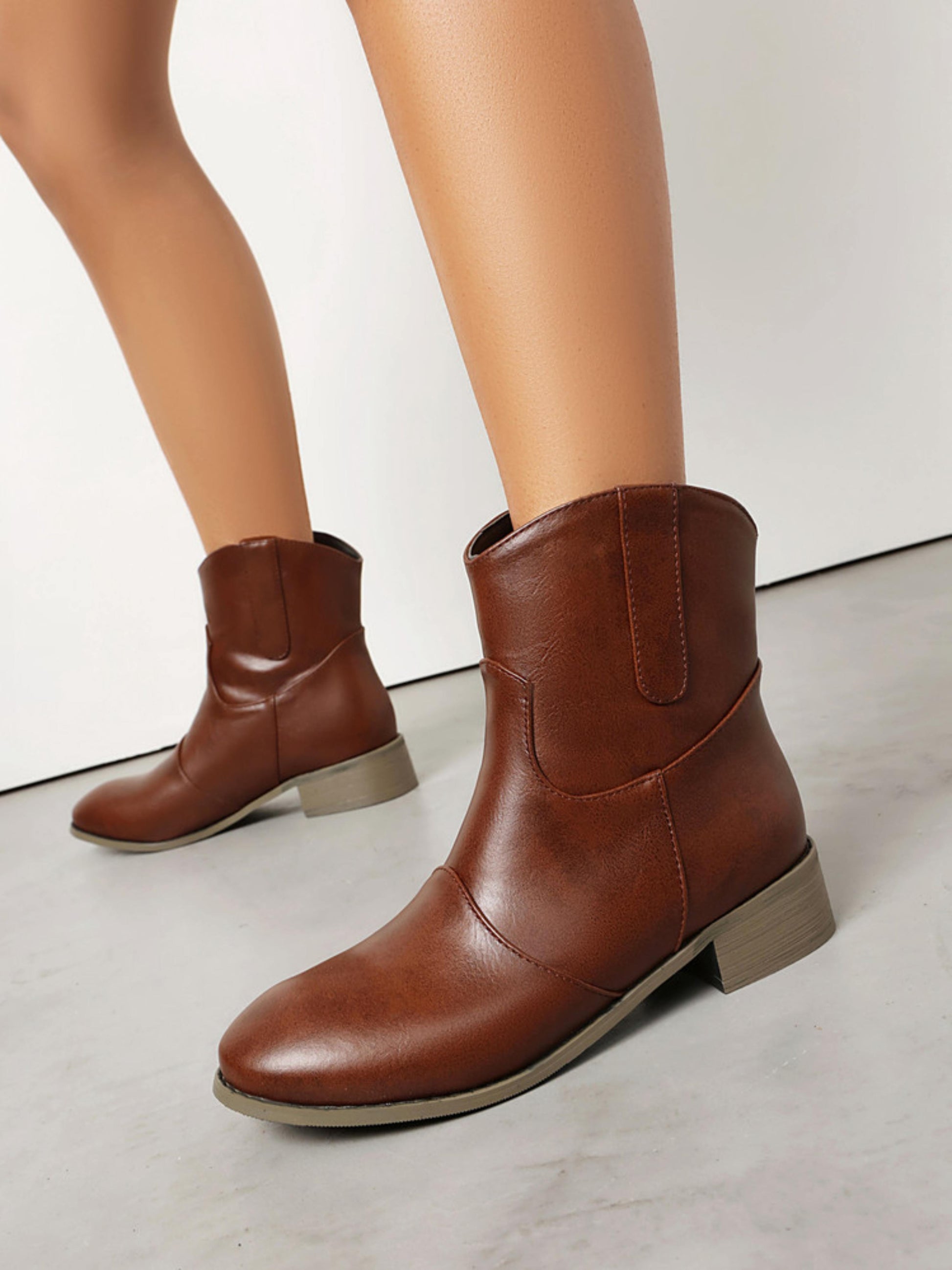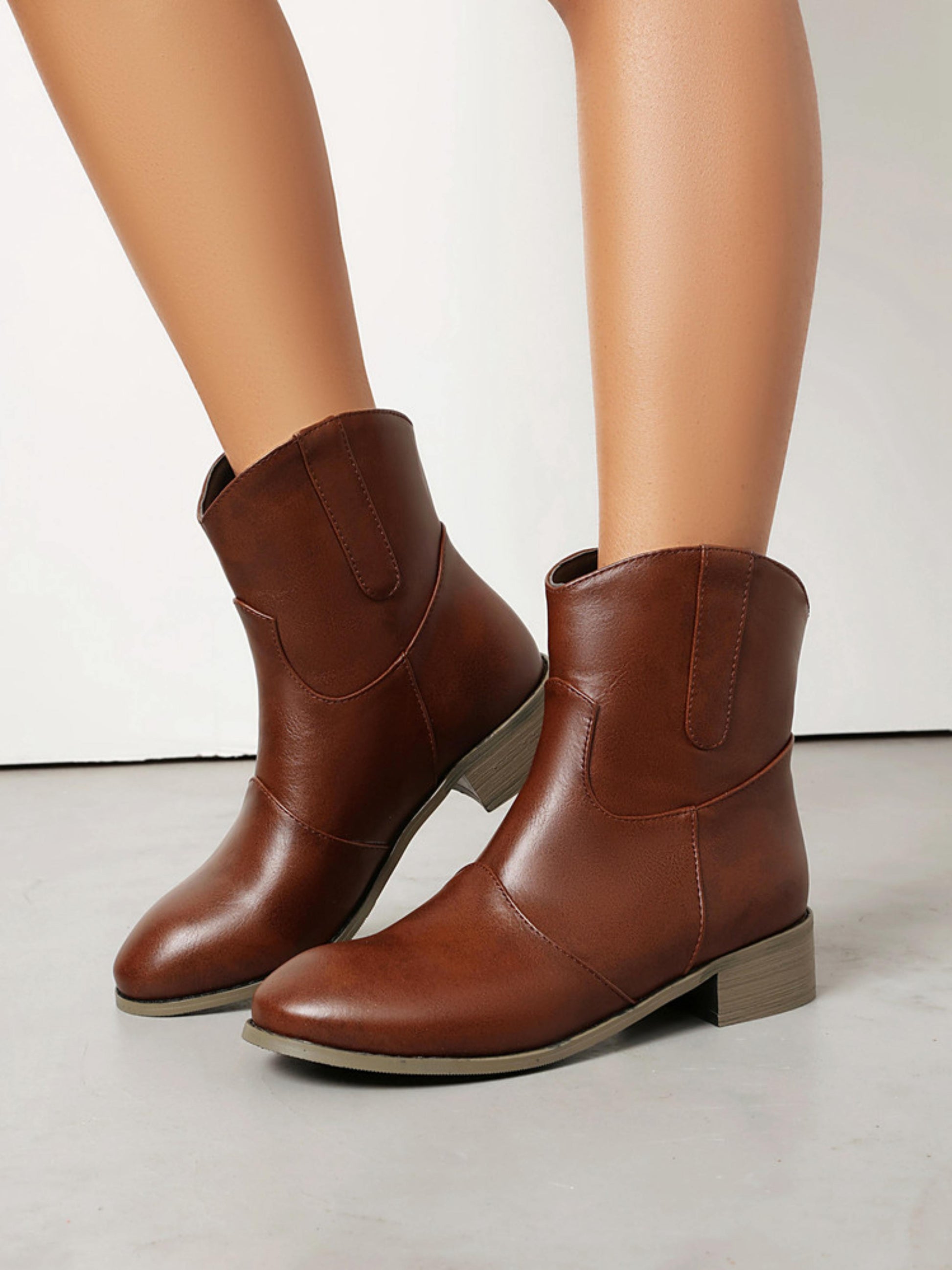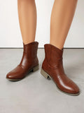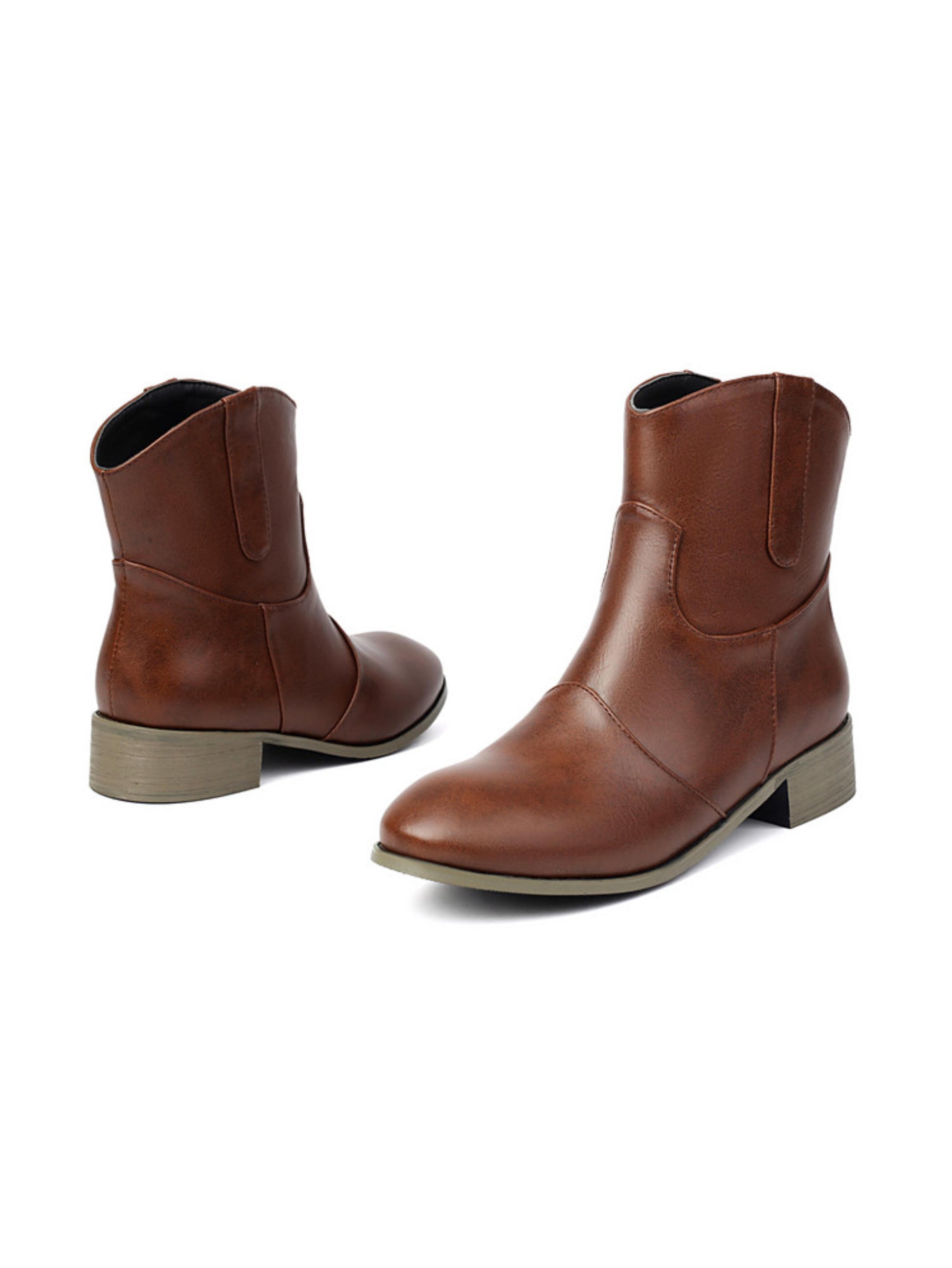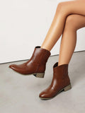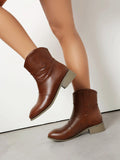 Women's dark brown cowgirl boots featuring an ankle-length design and comfortable low heel. Stylish western boots perfect for everyday wear, country fashion, and casual outfits, combining classic cowgirl style with all-day comfort and versatile dark brown color for easy outfit coordination.