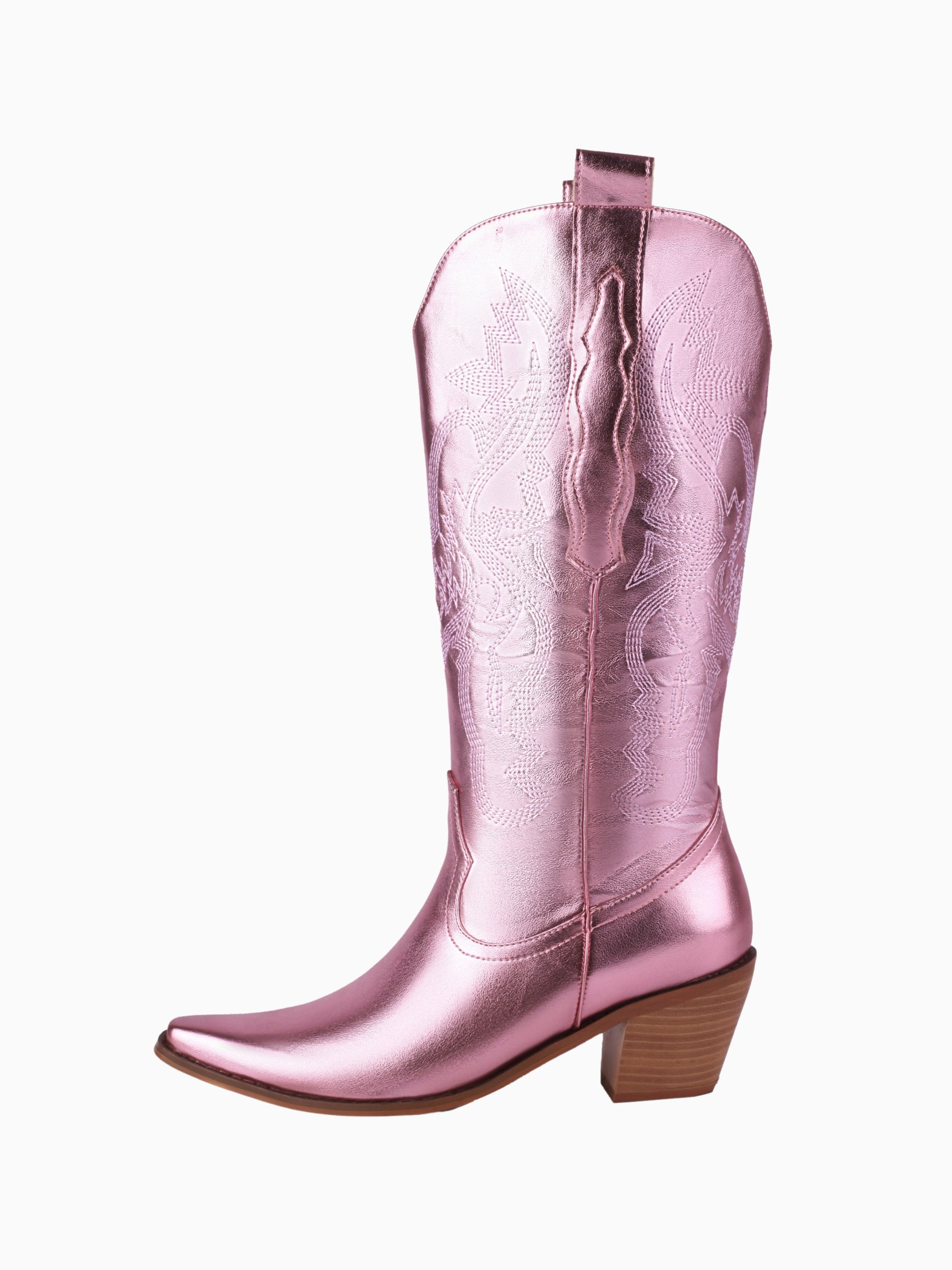 Shine Metallic Pink Mid-Calf Cowgirl Boots