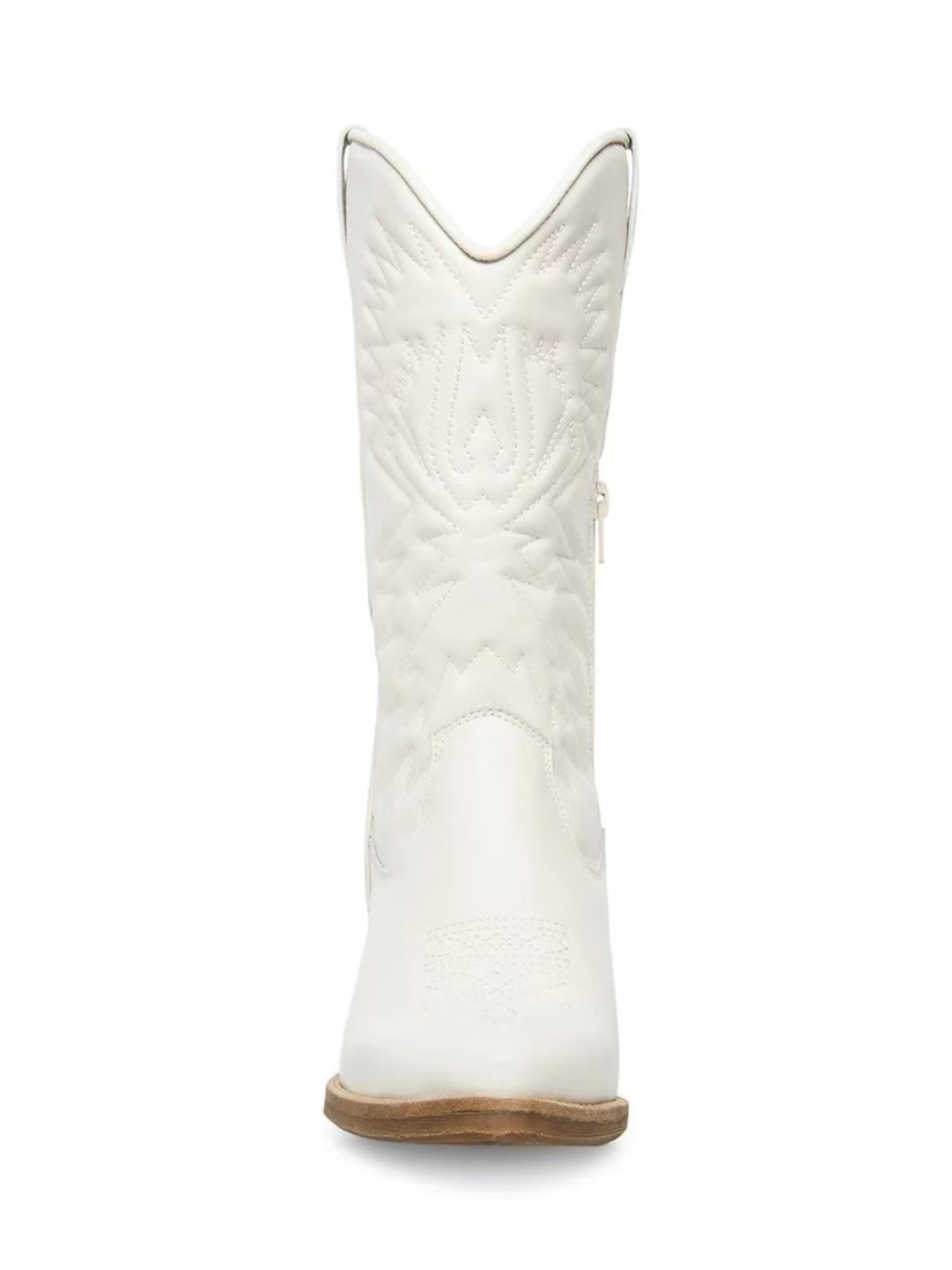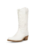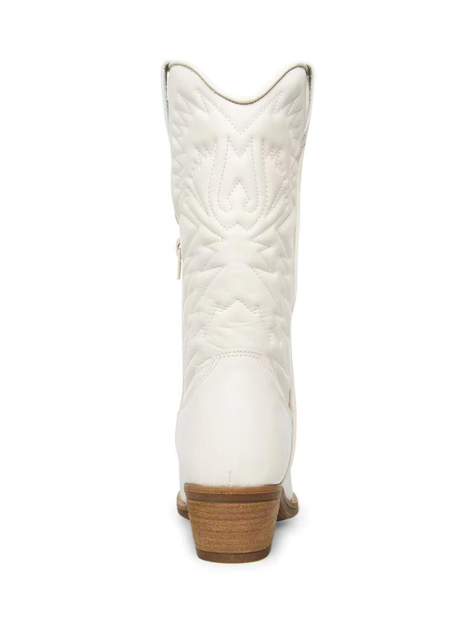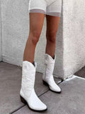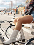 White Mid Calf Low Heel Snip Toe Cowgirl Boots for Women