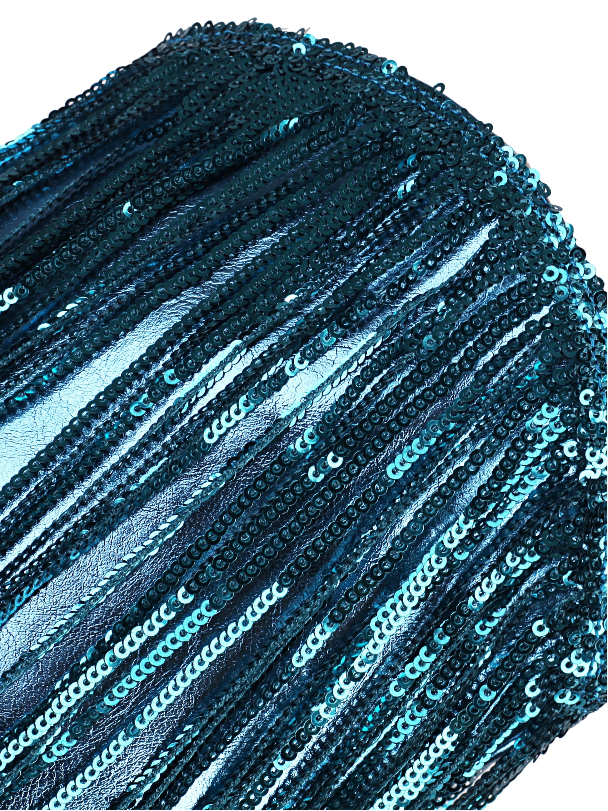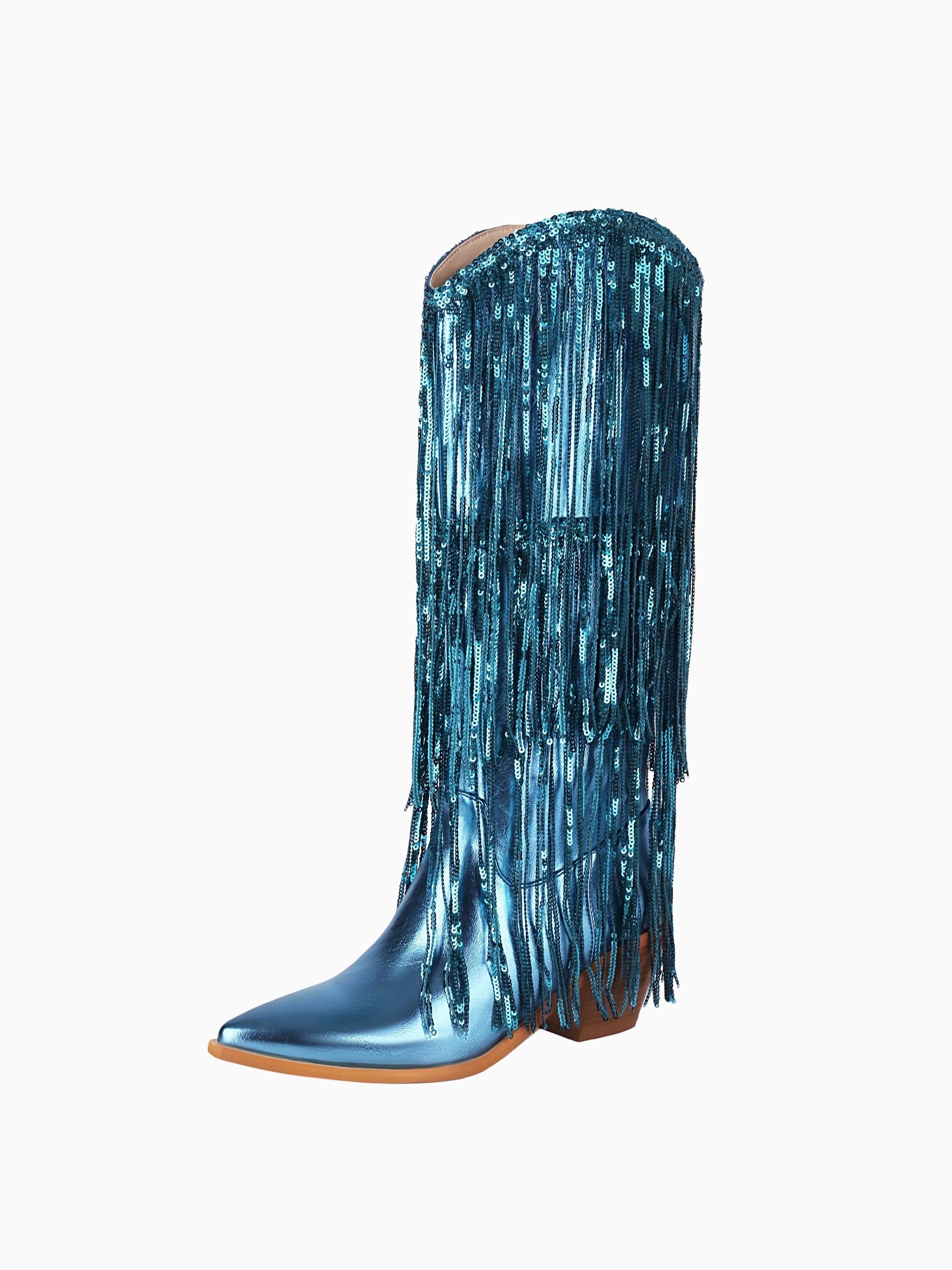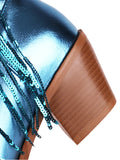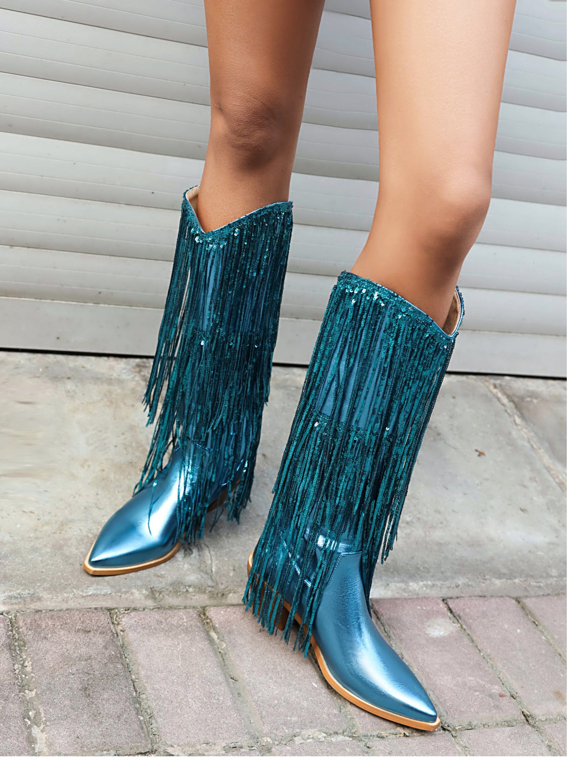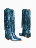 Mermaid Lagoon Shining Knee-High Blue Fringe Cowgirl Boots