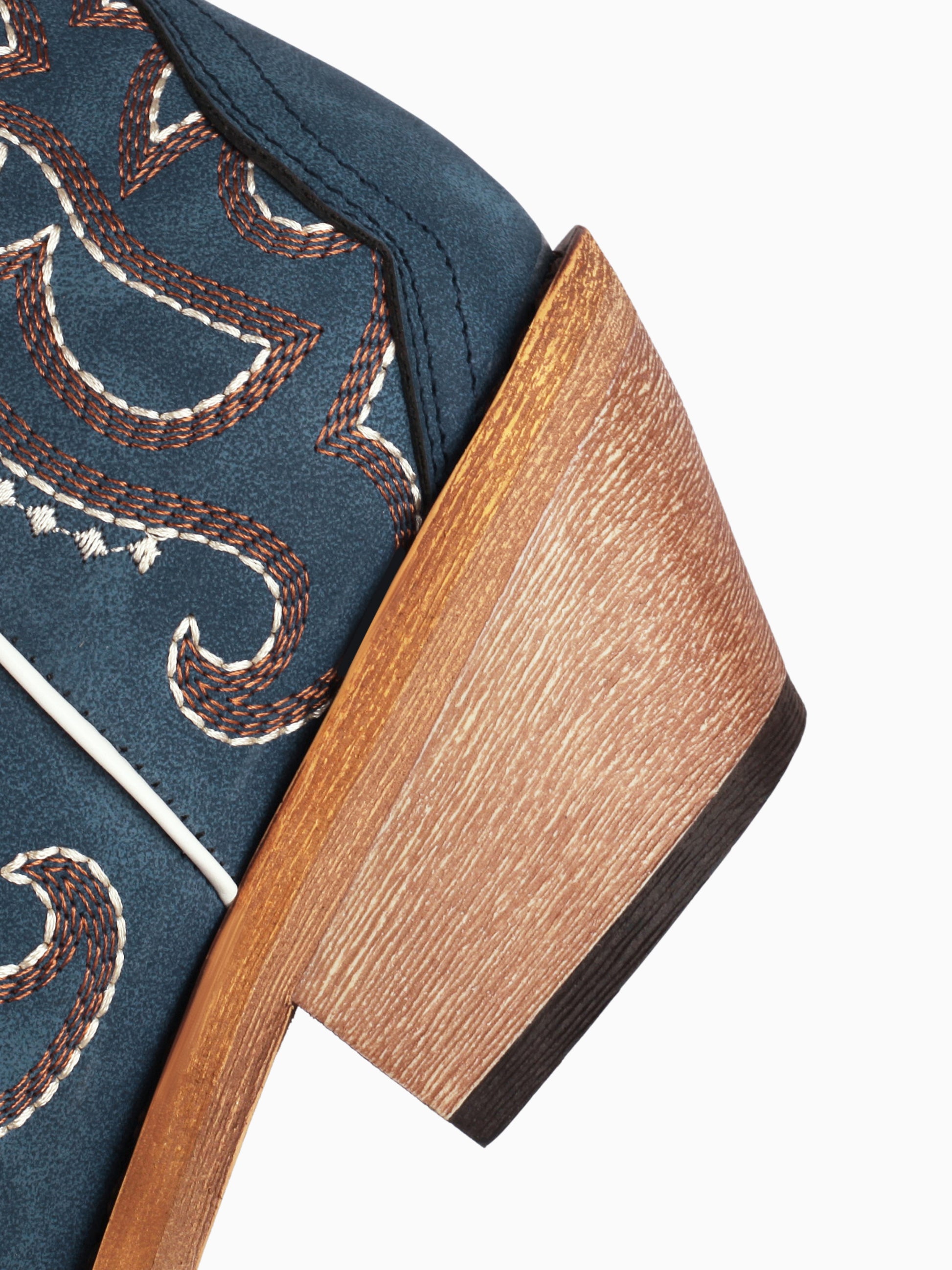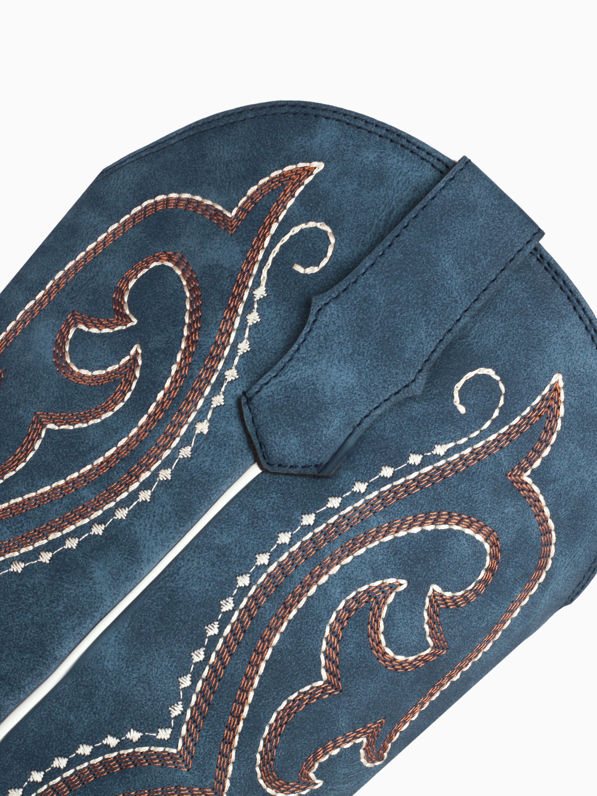 Navy Baroque Embroidered Mid Calf Cowgirl Boots